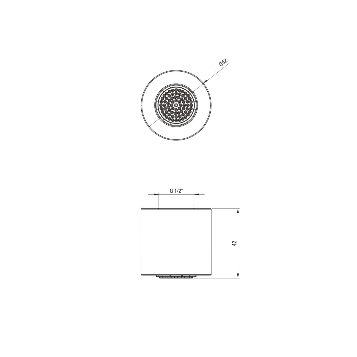 Dușul ploaie, cu formă rotundă, un diametru de 42 mm și o grosime de 42 mm, oferă o experiență de duș imersivă, cu un jet de tip ploaie. Pipa fixă a dușului ploaie are o rază de acțiune de 382 mm, asigurând o acoperire generoasă.