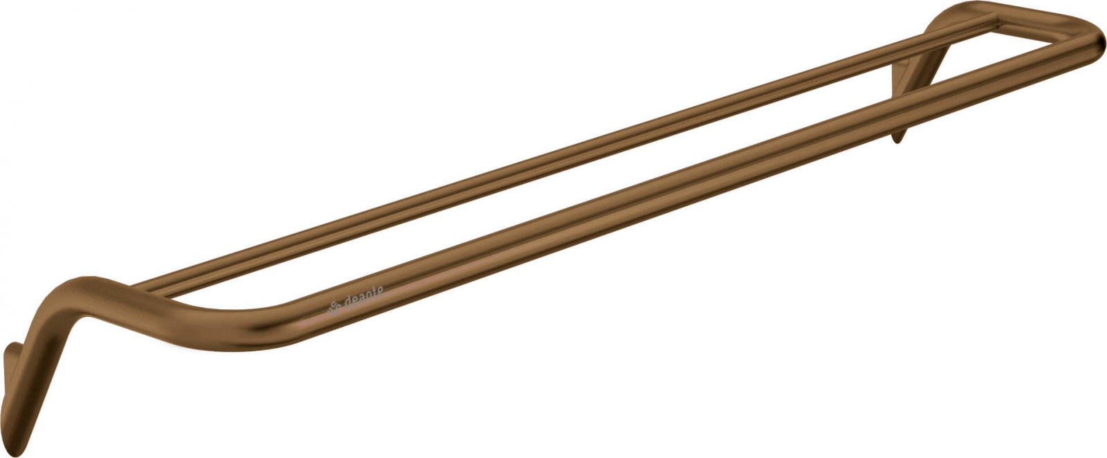 Suport dublu pentru prosoape Deante Silia, cu finisaj din bronz periat. Fabricat din alamă, are 61.6 cm lățime, se montează pe perete și include kit de montare. Garanție de 2 ani.
