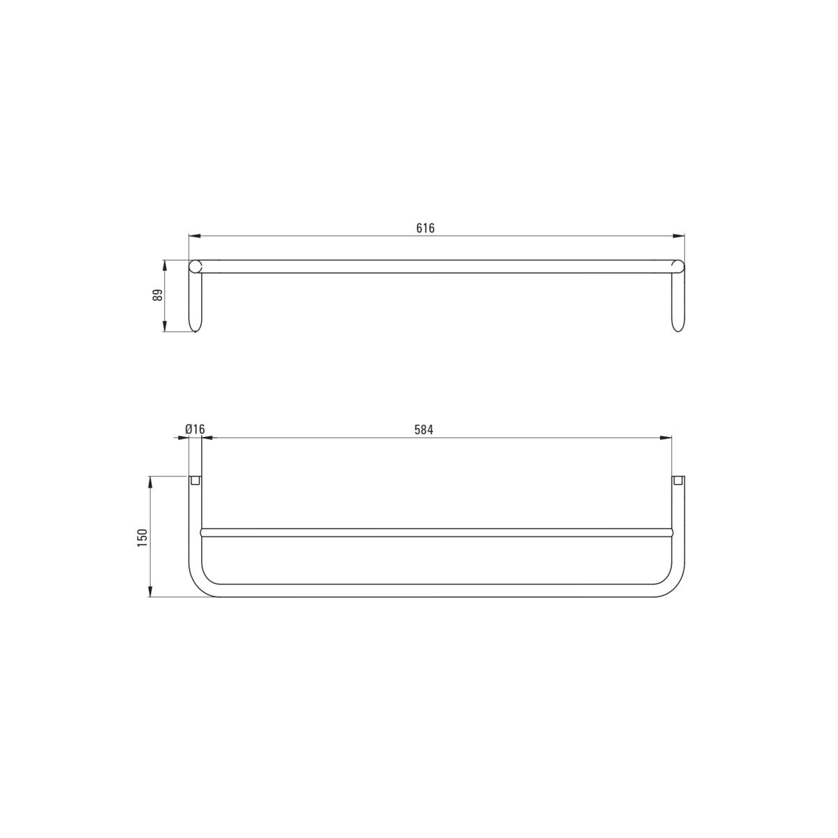 Fabricat din alamă, un material premium recunoscut pentru durabilitatea sa excepțională și rezistența la coroziune, acest suport este o investiție pe termen lung pentru baia ta. Cu o lățime de 616 mm, o înălțime de 89 mm și o adâncime de 150 mm, suportul oferă o soluție practică și estetică de depozitare.