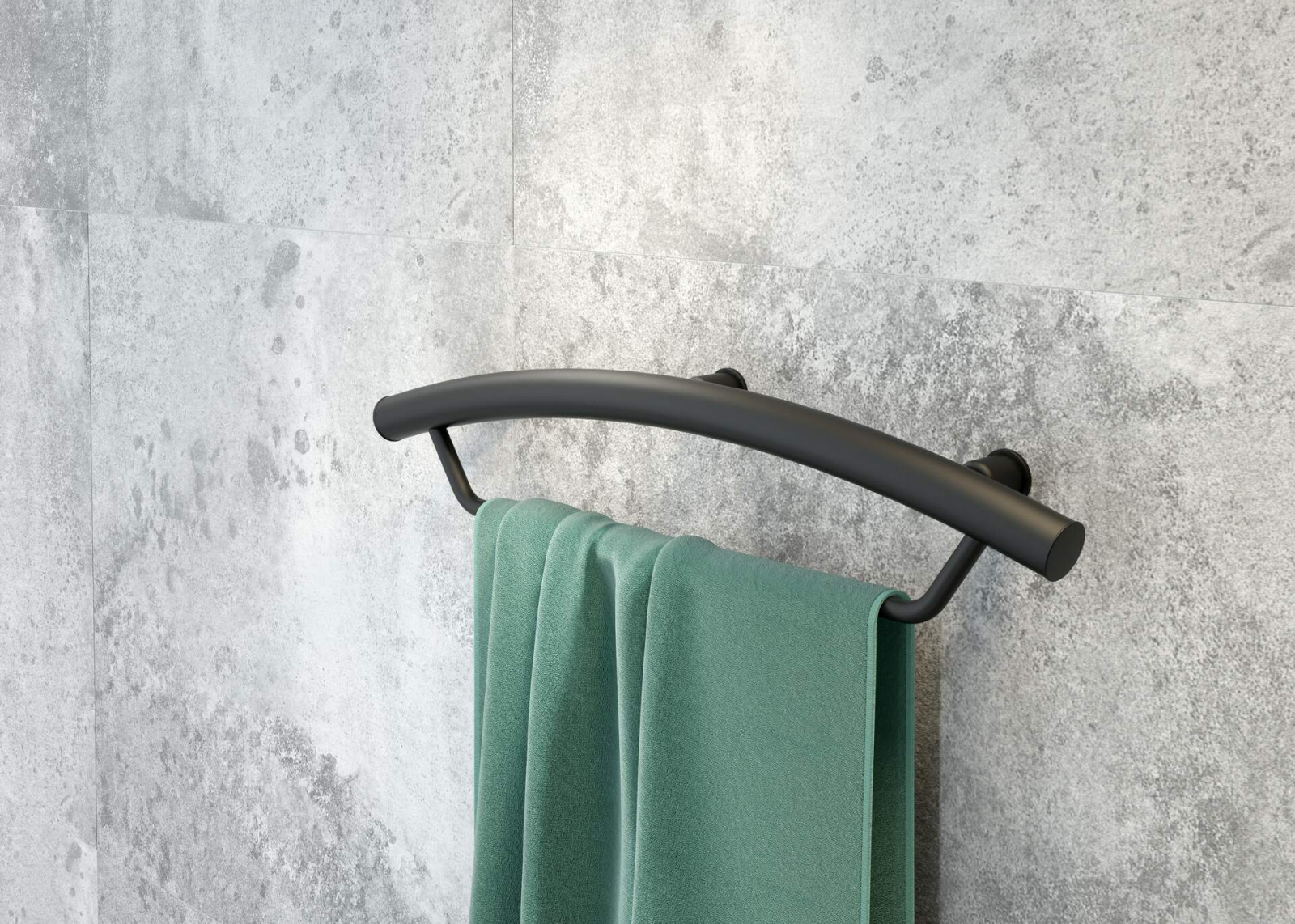 Bară de susținere Deante Vital, cu suport prosop, 2 în 1, neagră