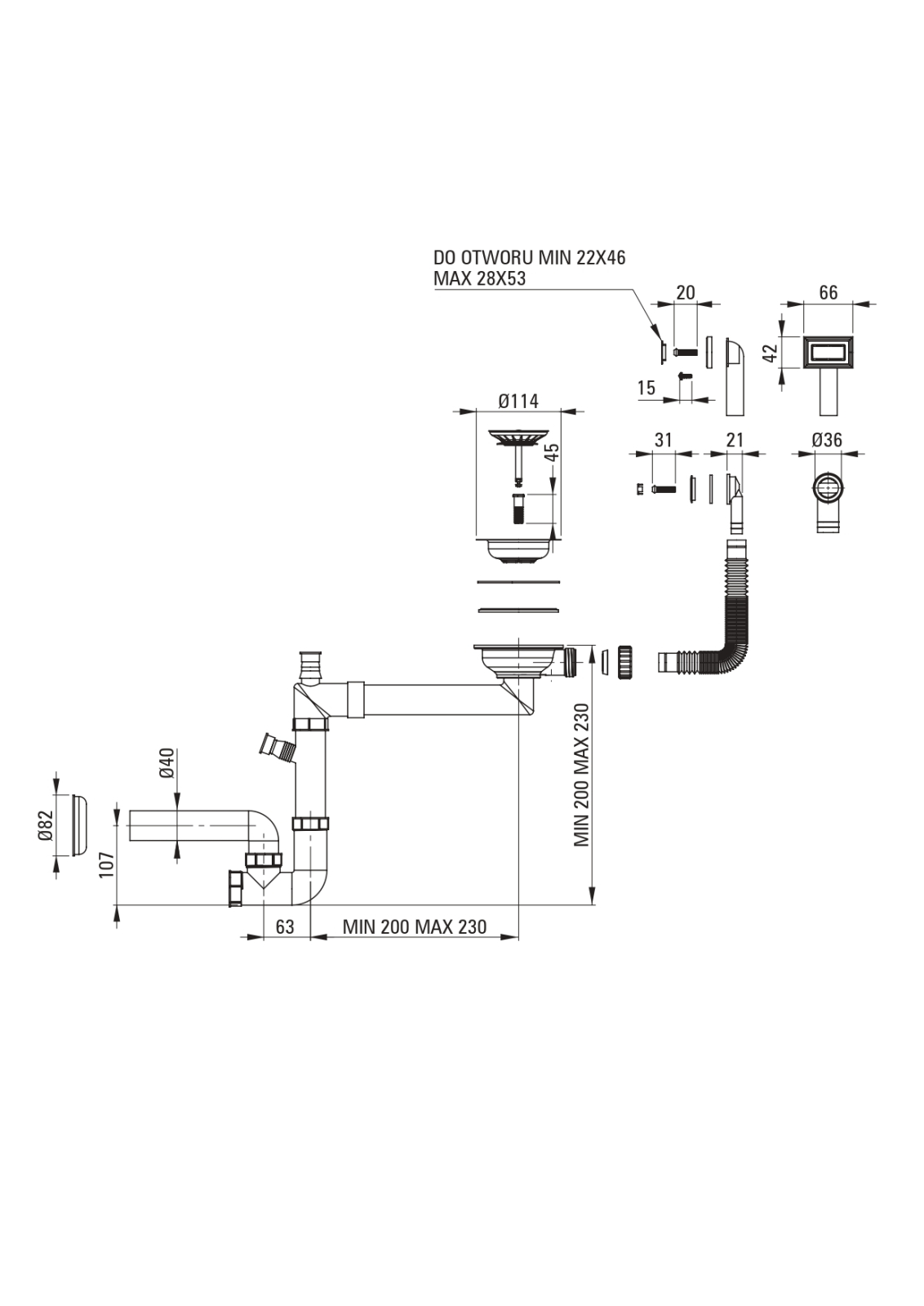 Sifonul este prevăzut cu un dop de tip manual, iar scurgerea are loc pentru preaplin. O altă caracteristică utilă este posibilitatea de a conecta o mașină de spălat vase sau rufe. Acest sifon este un produs de calitate, beneficiind de o garanție de 2 ani.