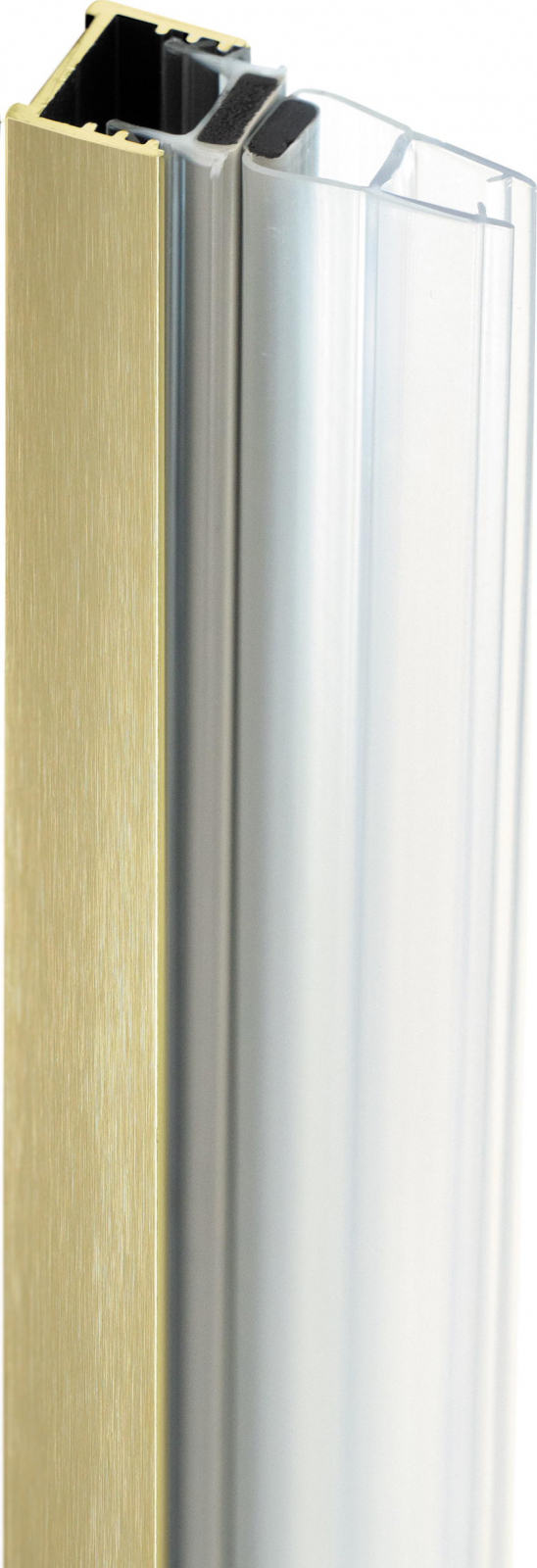Profil de închidere pentru ușa de duș din colecția Prizma, cu o înălțime de 195 cm și un finisaj auriu periat. Produsul beneficiază de o garanție de 2 ani.
