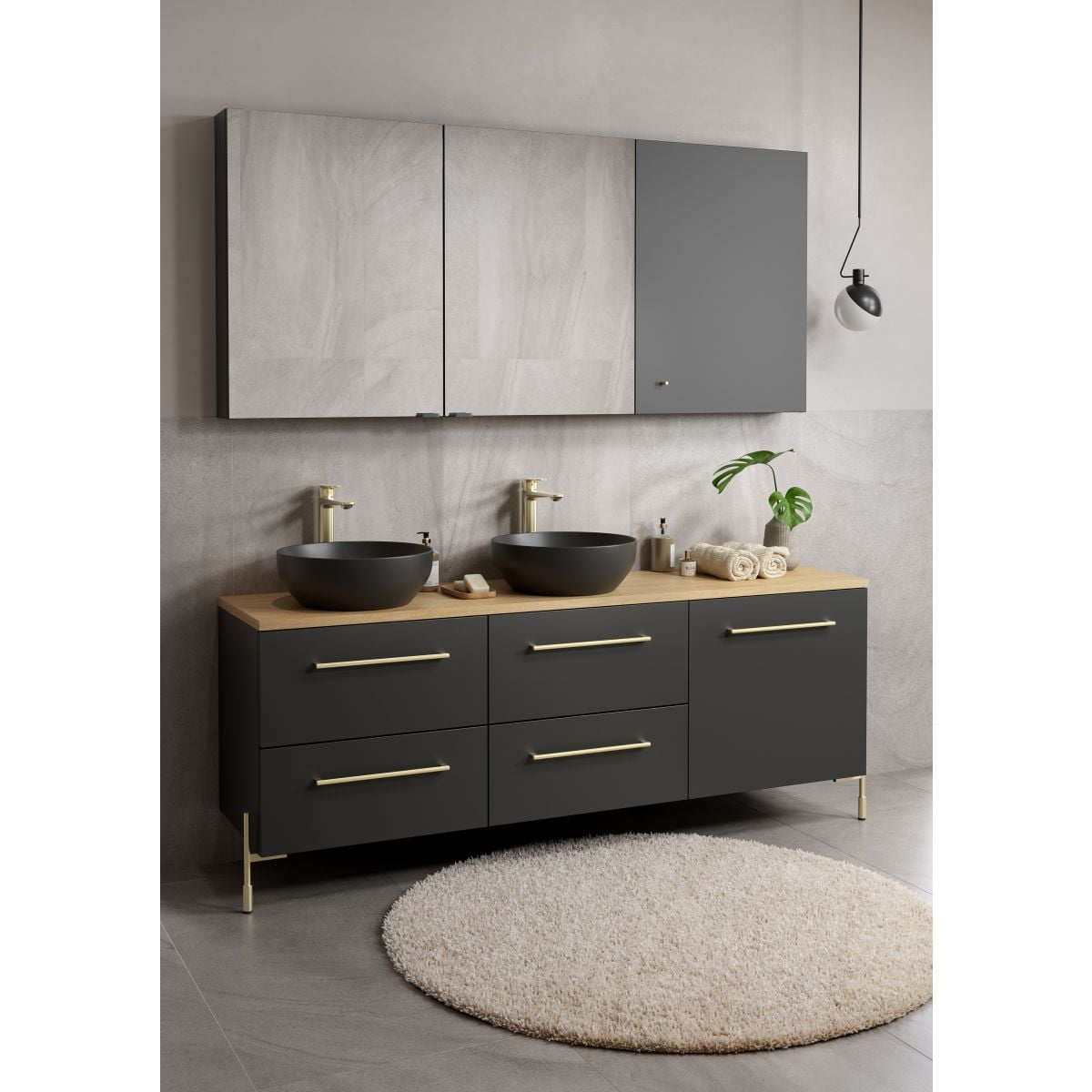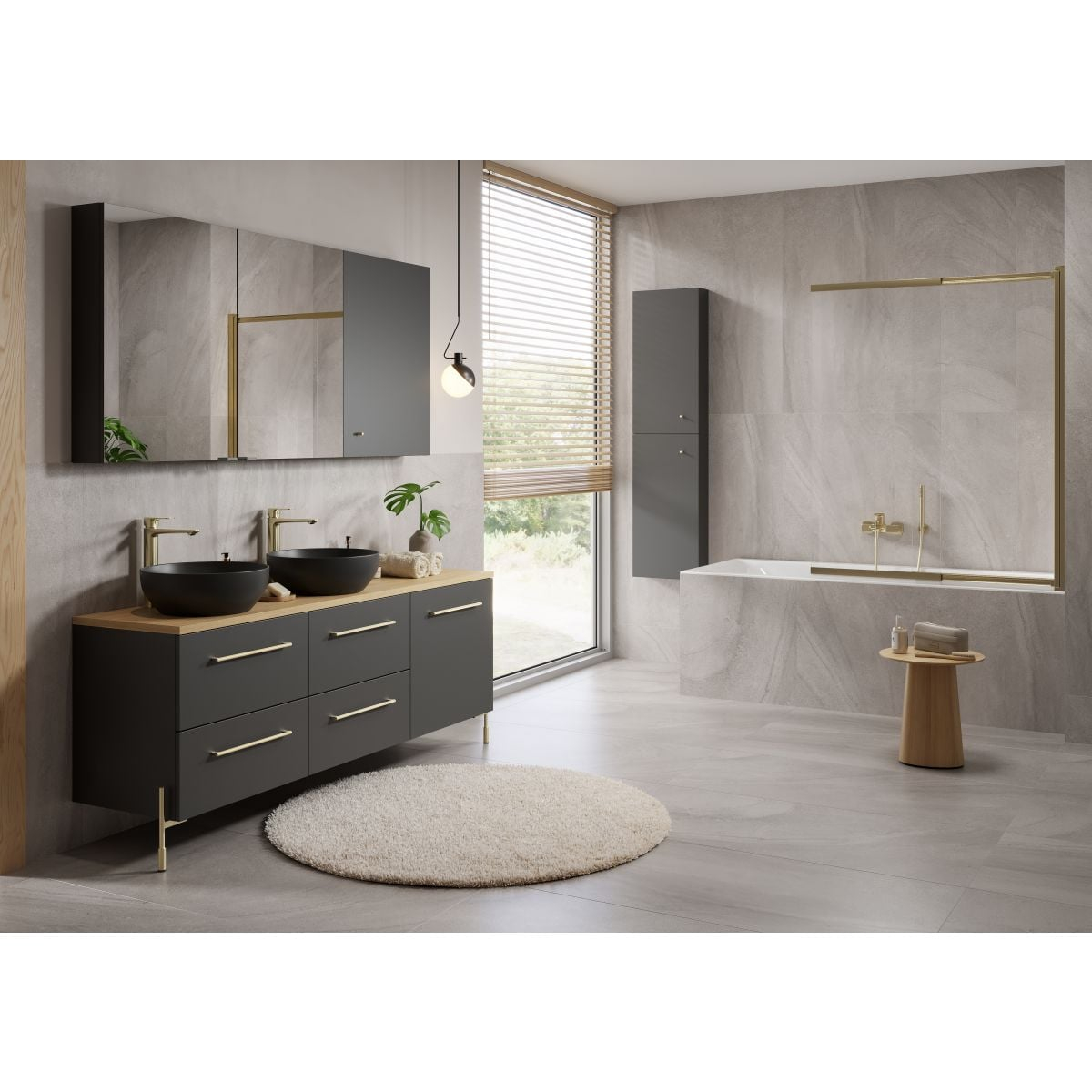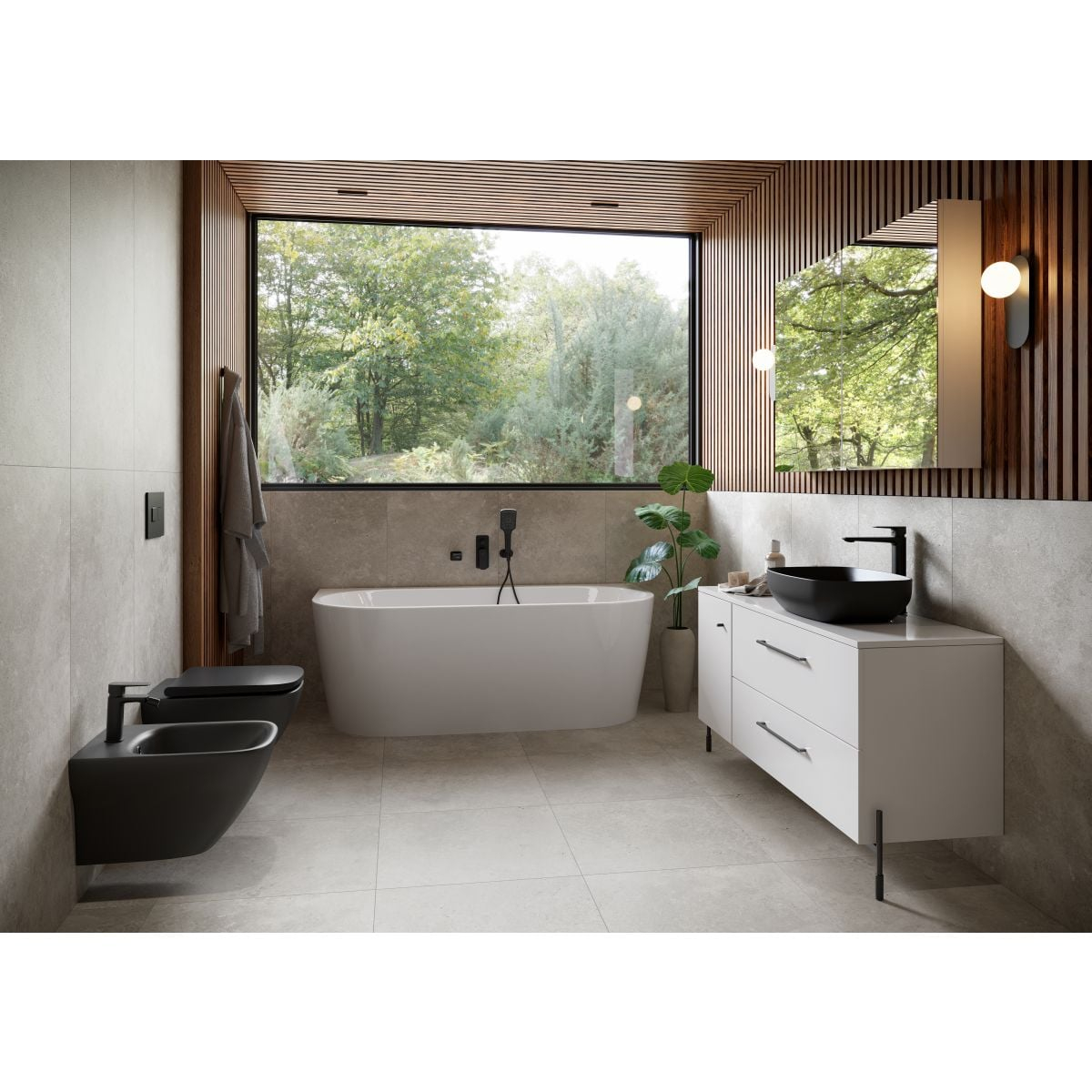 Designul canelat (riflat) aduce un plus de stil și coerență vizuală, fiind în linie cu tendințele actuale din designul de baie. Finisajul negru mat creează contrast și evidențiază mobilierul, fiind ideal pentru amenajări moderne sau industriale.