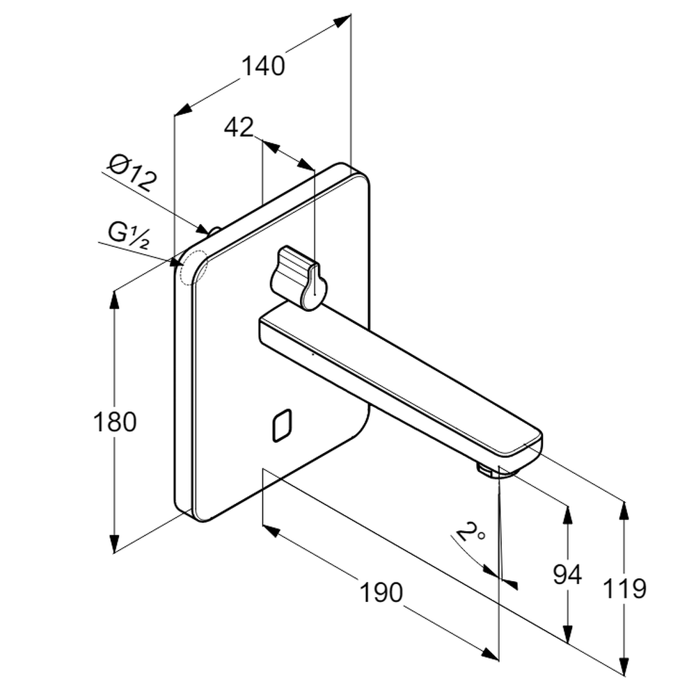 Baterie lavoar incastrata cu senzor Kludi Zenta SL 2 alimentare la retea sau baterie 6V, maner reglare temperatura, crom lucios.