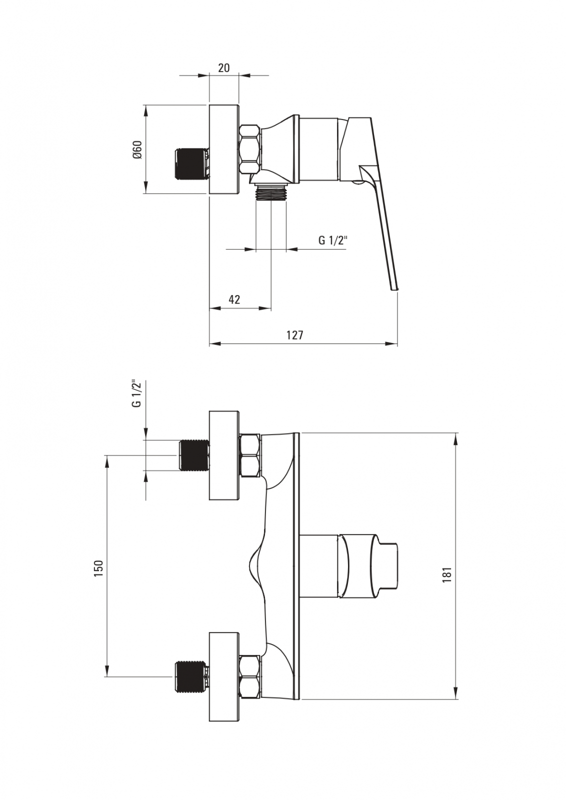 Baterie duș Deante Loco cu montaj pe perete și finisaj cromat. Fabricată din alamă, include cartuș ceramic de 35 mm. Clasa de Debit S. Garanție 7 ani.