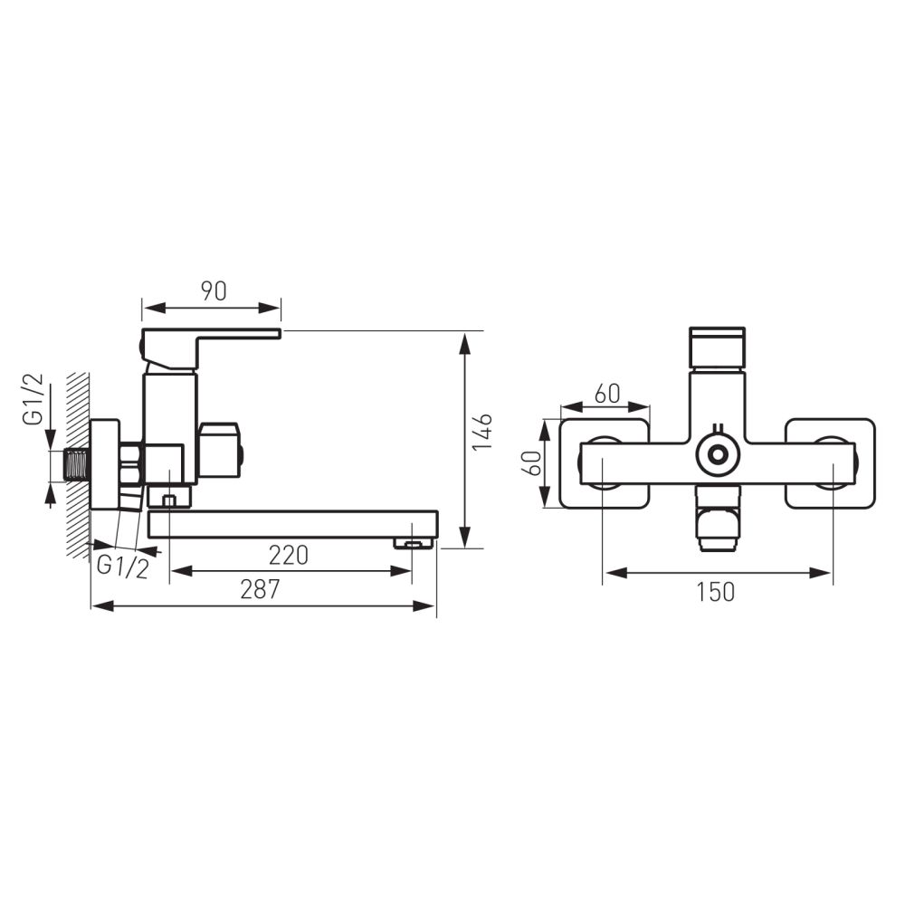 Baterie perete cada sau dus culoare crom Ferro, Zicco cu pipa mobila