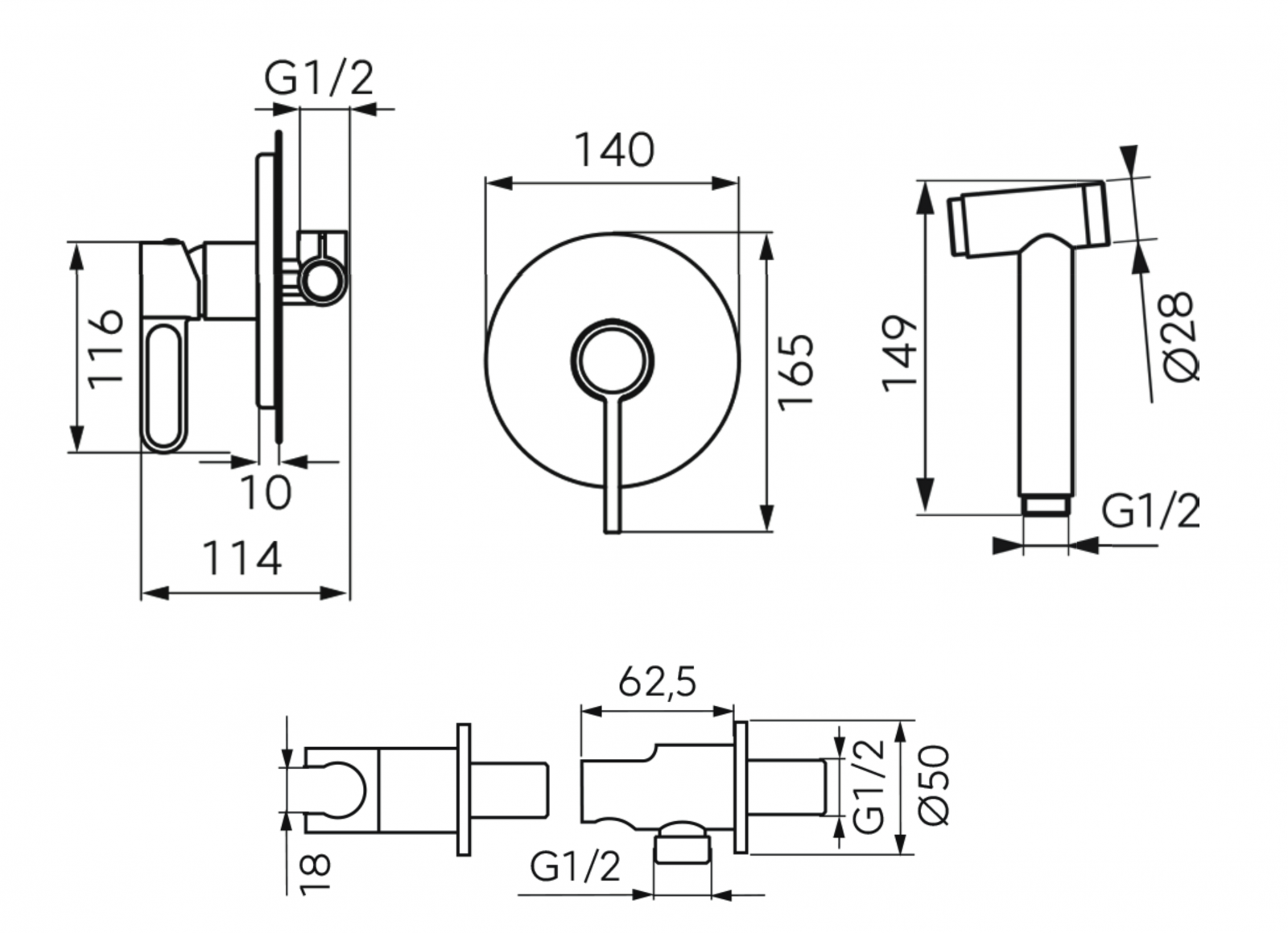 Designul ascuns (încastrat) al bateriei salvează spațiu și conferă un aspect curat, integrându-se perfect în perete. Mânerele vizibile – o suprafață rotundă și o rachetă elegantă – reflectă rafinamentul și calitatea produsului