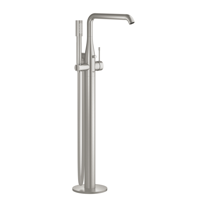 Bateria de cadă freestanding Grohe Essence în finisaj SuperSteel redefinește eleganța în băile moderne, fiind concepută special pentru căzile freestanding amplasate central sau în spații premium. Designul minimalist, cu linii fluide și proporții echilibrate, se integrează perfect în amenajări contemporane, oferind un aspect sofisticat și coerent.