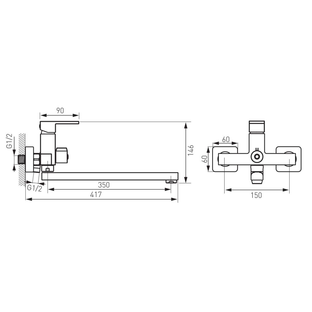 Baterie perete cada sau dus culoare crom Ferro, Zicco cu pipa mobila