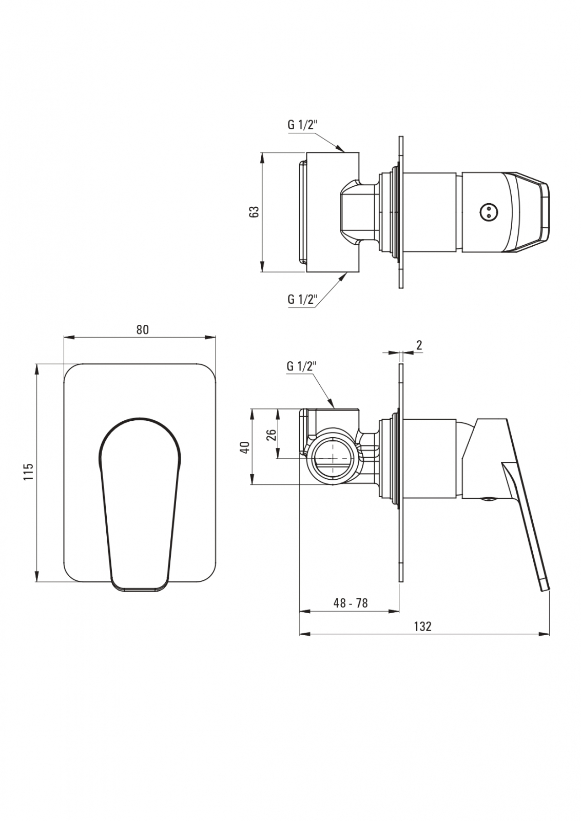 Fabricată din alamă, această baterie monocomandă este echipată cu un cartuș ceramic de 35 mm, asigurând o operare precisă și o durată de viață îndelungată. De notat că această variantă a bateriei Jasmin este fără comutator, fiind ideală pentru configurațiile de duș cu o singură ieșire de apă sau pentru utilizarea cu un sistem de duș extern cu propriul comutator.