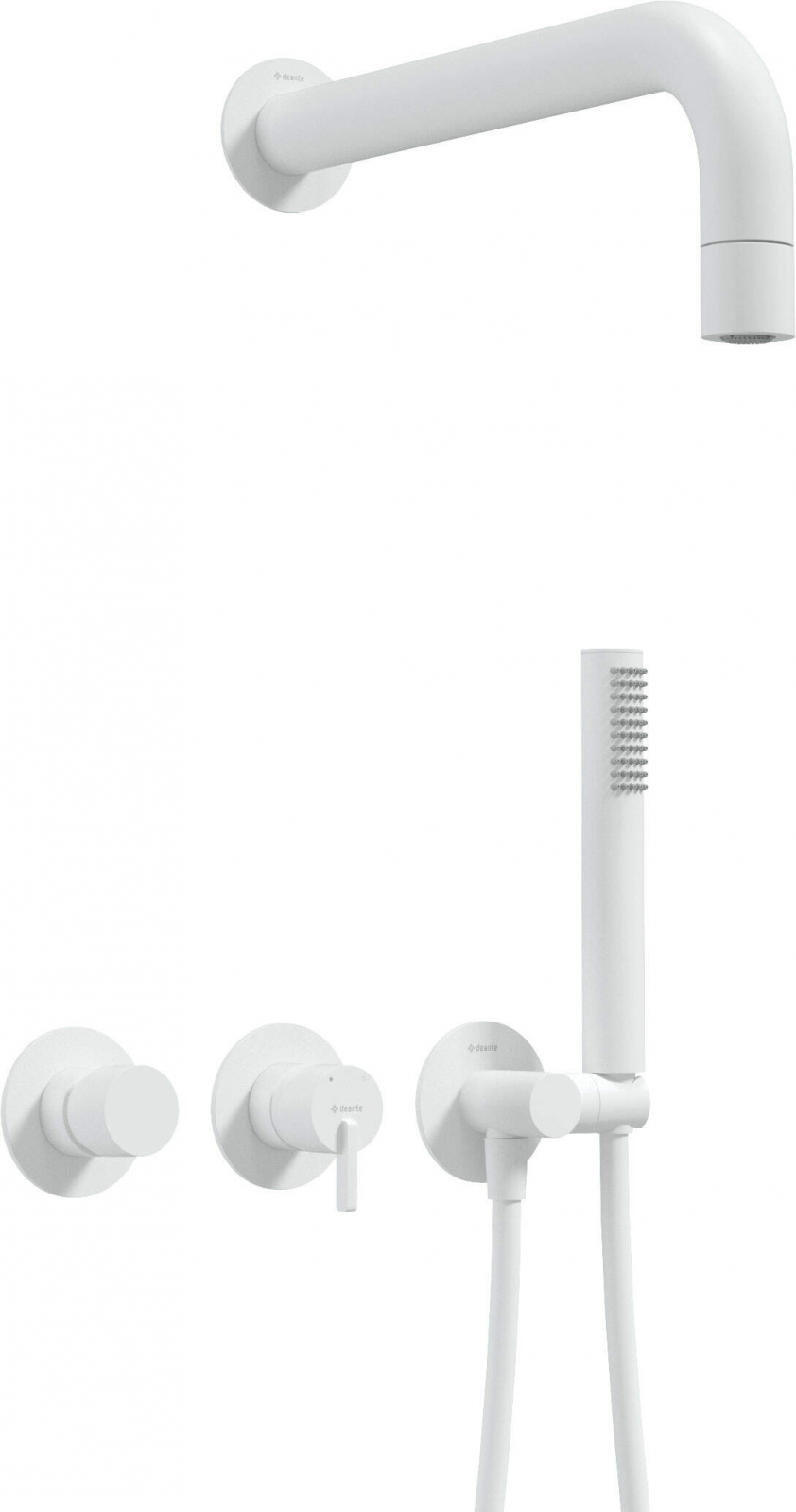 Set de duș încastrat cu duș ploaie, pară de duș și baterie, alb mat, Deante Silia