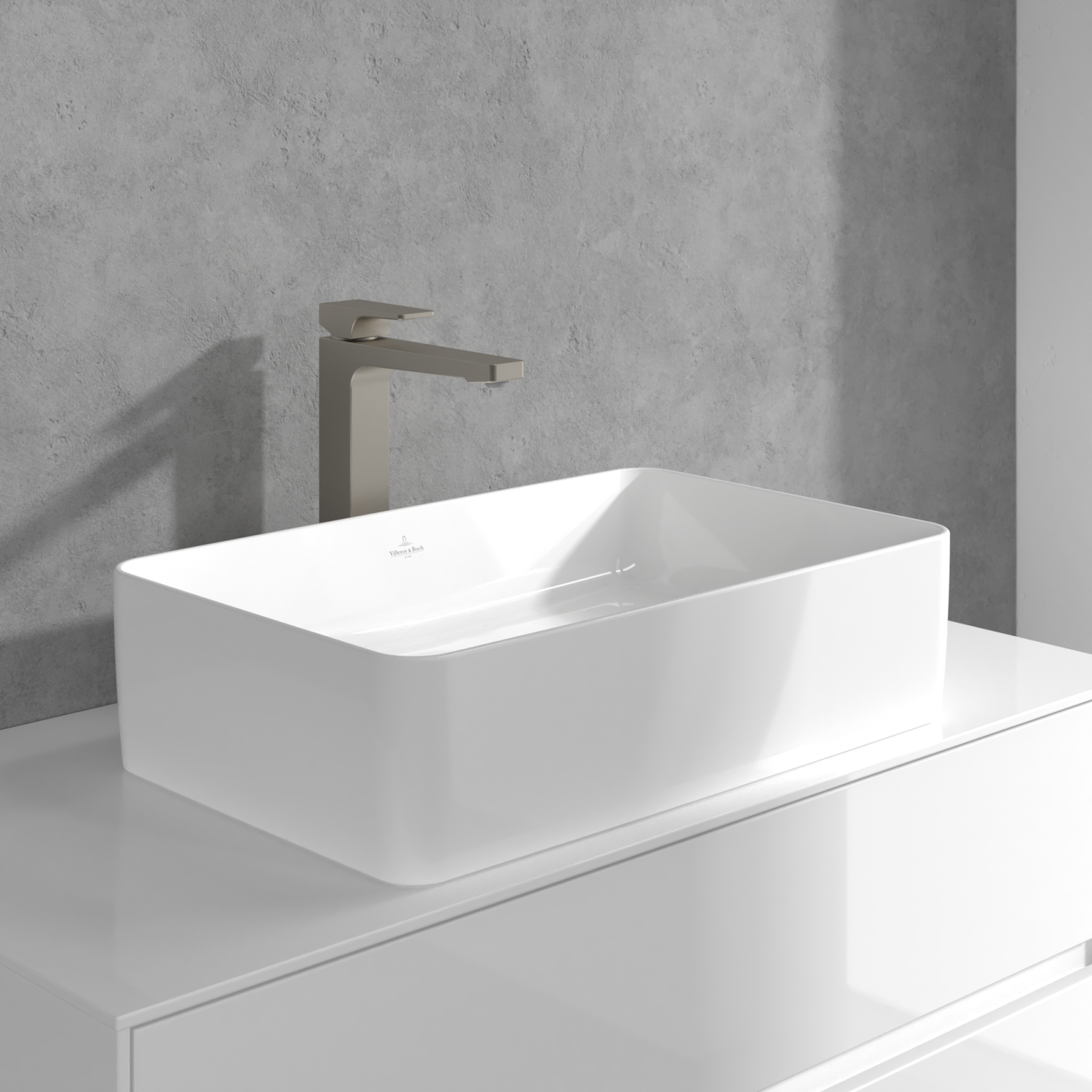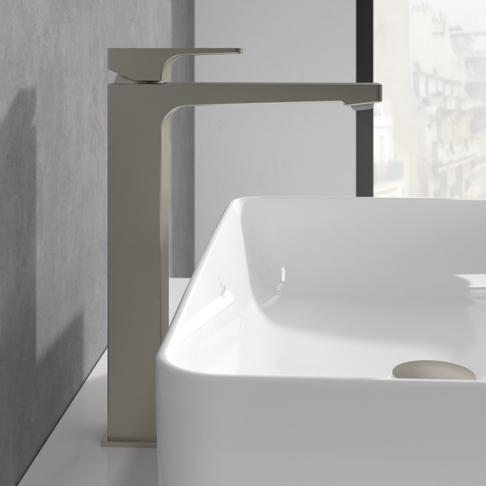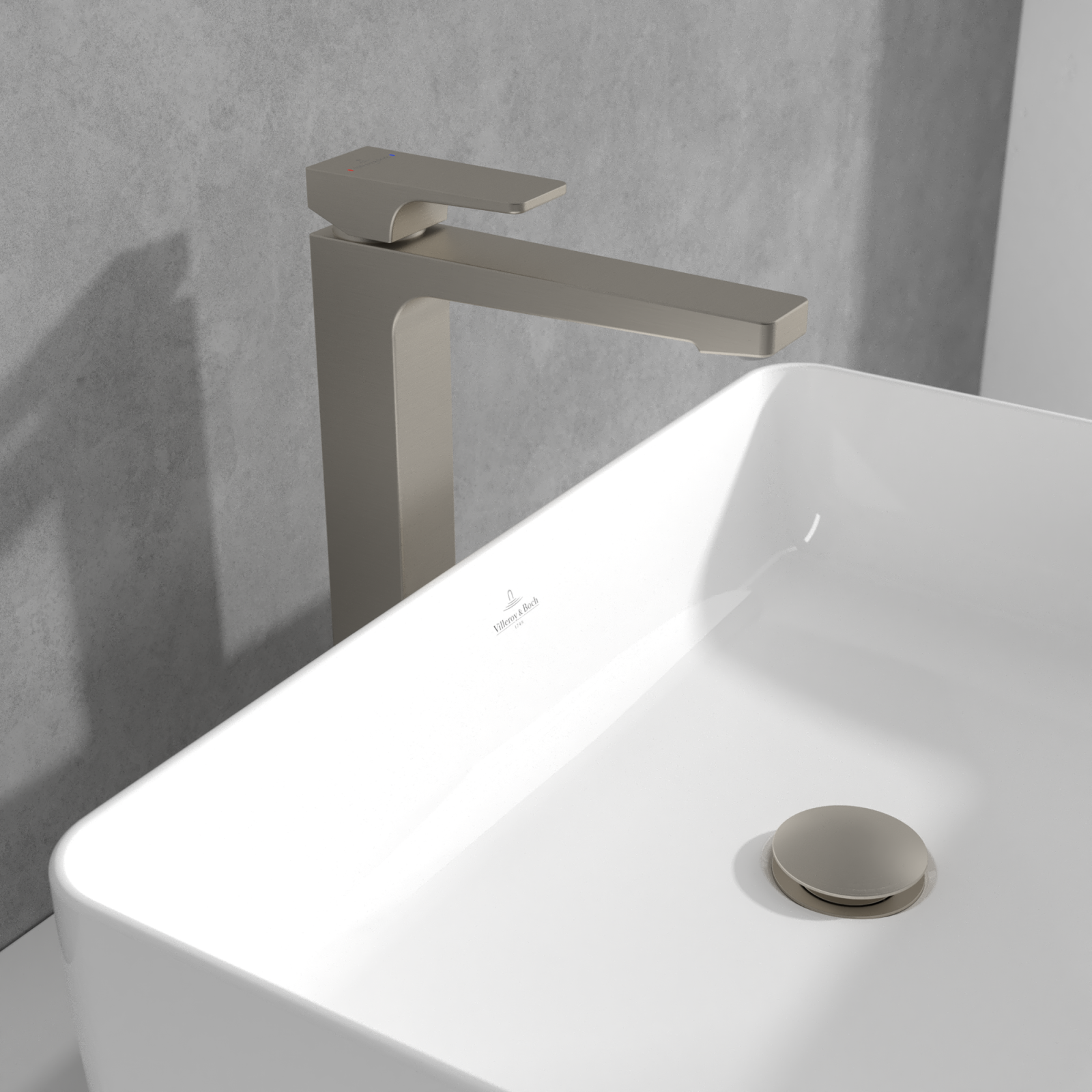 Bateria înaltă pentru lavoar din colecția Architectura Square de la Villeroy & Boch este o alegere rafinată pentru băile contemporane, unde accentul cade pe echilibru vizual, funcționalitate și materiale premium.