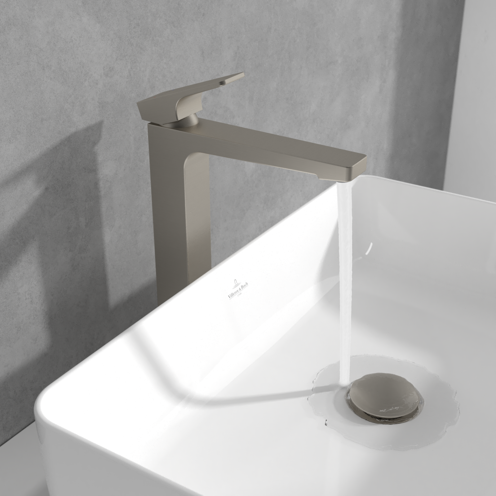 Baterie inalta pentru lavoar cu ventil click-clack, nichel periat, Villeroy&Boch Architectura Square