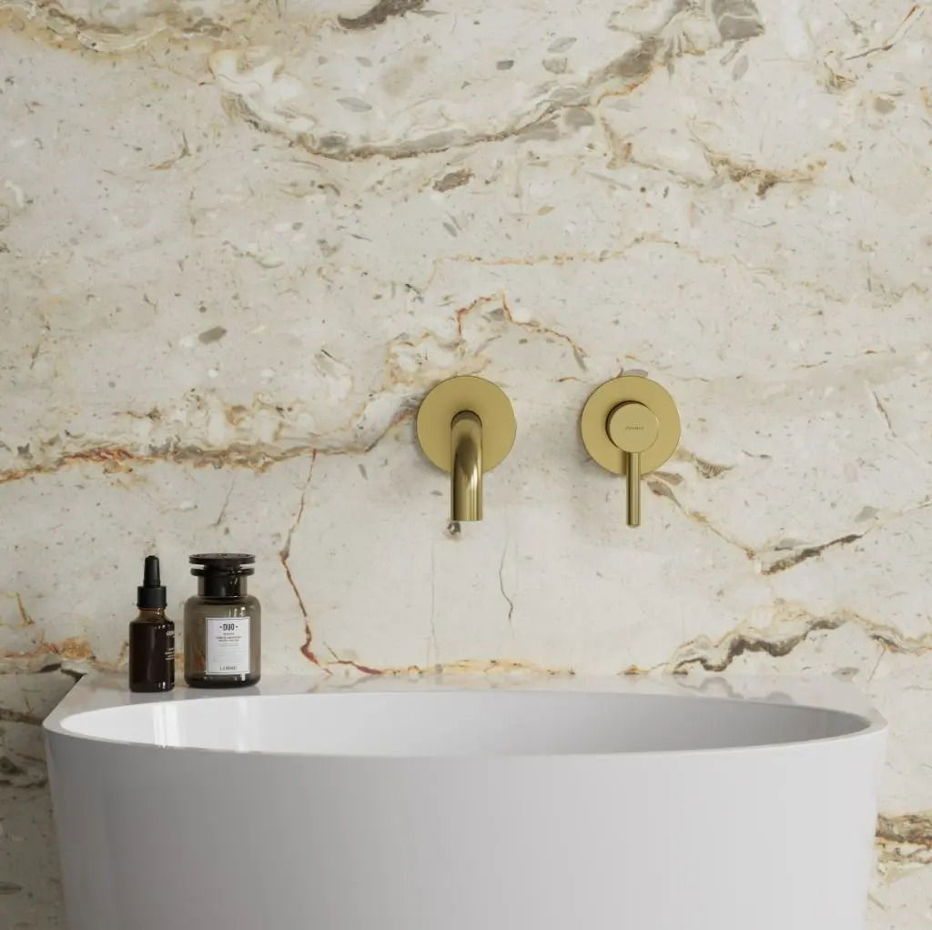 Bateria Omnires este parte a colecției Y – o linie minimalistă și rafinată, inspirată de forma perfectă a cercului. Produsul este realizat din alamă de calitate A, are un finisaj auriu periat aplicat prin tehnologie PVD, și oferă o estetică caldă, satinată, potrivită pentru spații sanitar elegante.