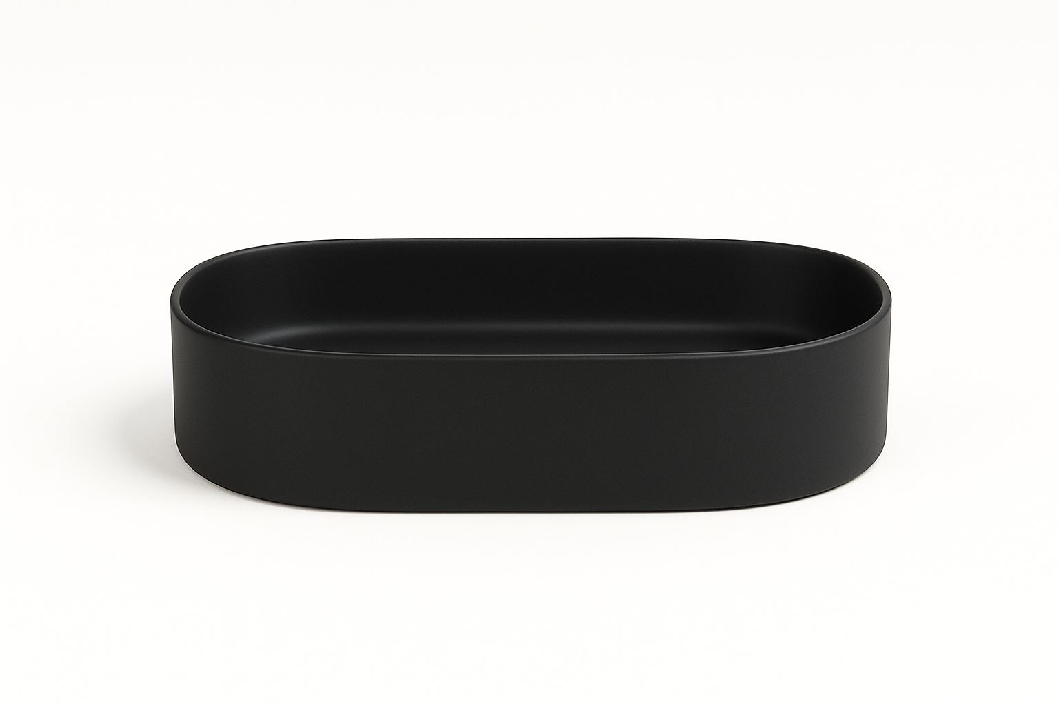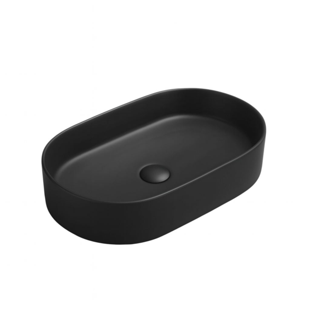 Lavoar pe blat Foglia Adelais, negru mat, oval, 60 cm - Stil modern și rezistență pentru băi elegante