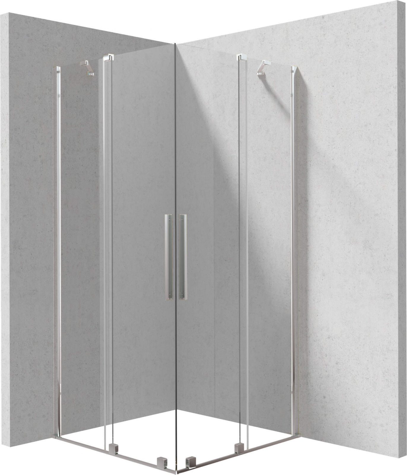 Cabina de duș Deante Prizma, pătrată, 90x90 cm, cu uși batante, sticlă de 6 mm cu tratament Active Cover și profil cromat.