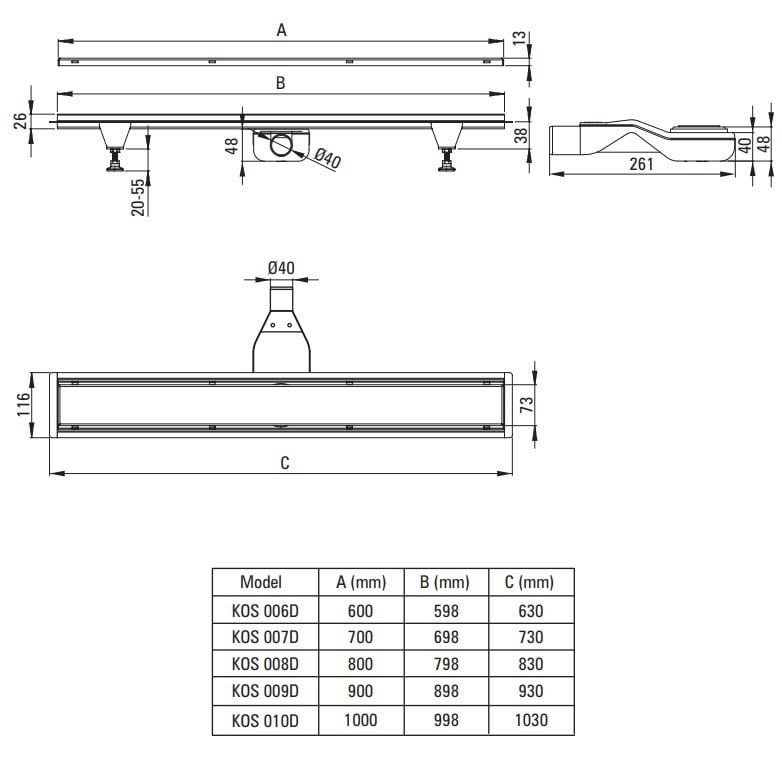 Tip produs: Rigolă de duș, rigolă de duș faiantabilă.