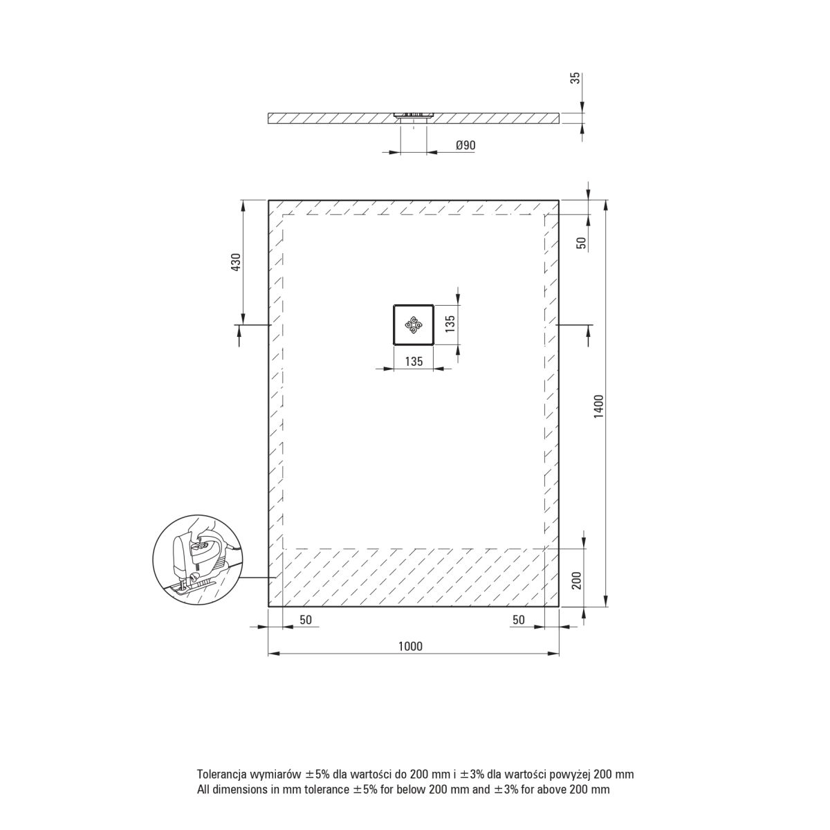 Confort și spațiu: Dimensiunile generoase de 140x100 cm oferă o suprafață amplă pentru o experiență de duș relaxantă.