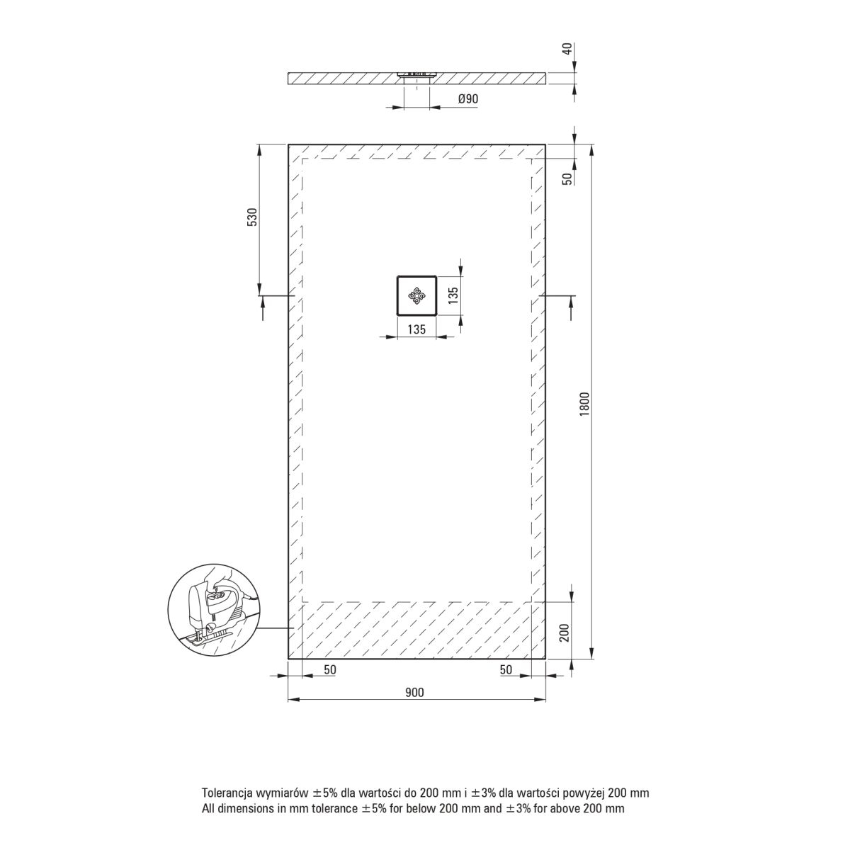 Dimensiuni: 1800 x 900 x 35 mm.