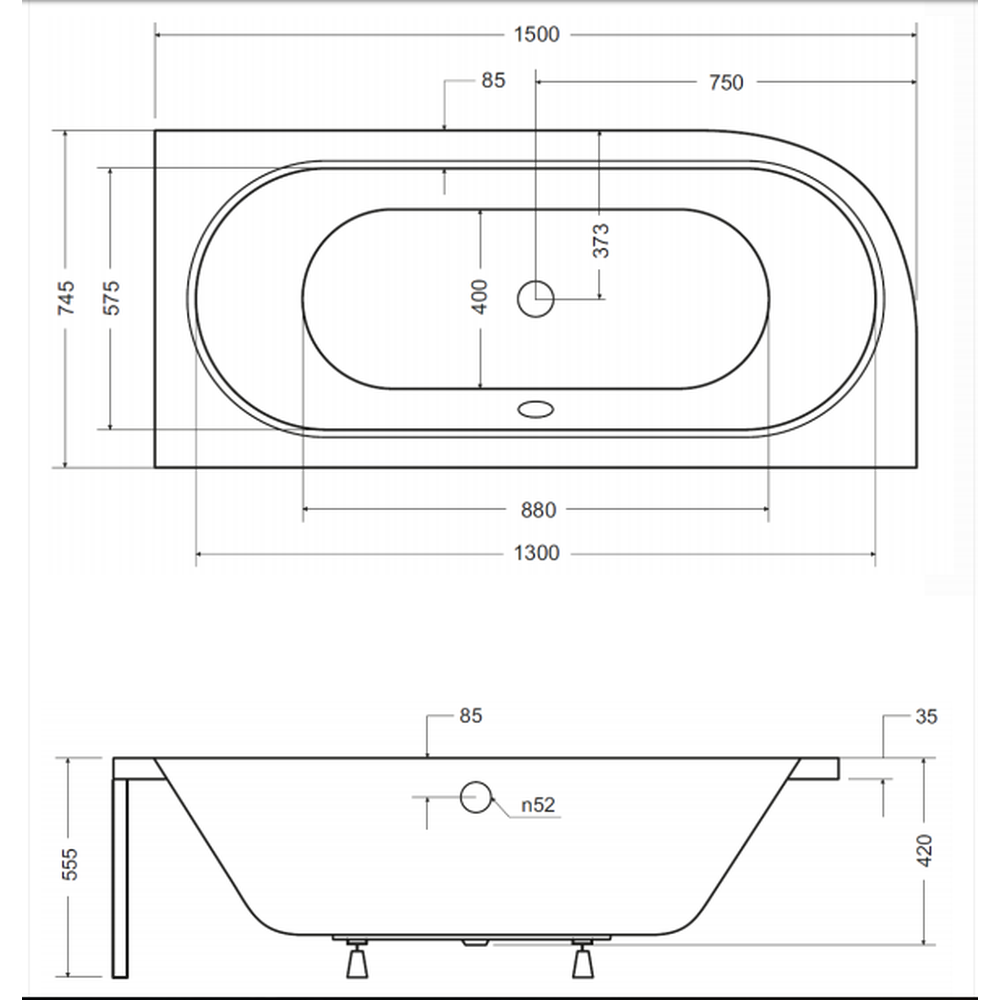 Dimensiune: 1800x800 mm, 1700x750 mm, 1600x750 mm, 1500x750 mm