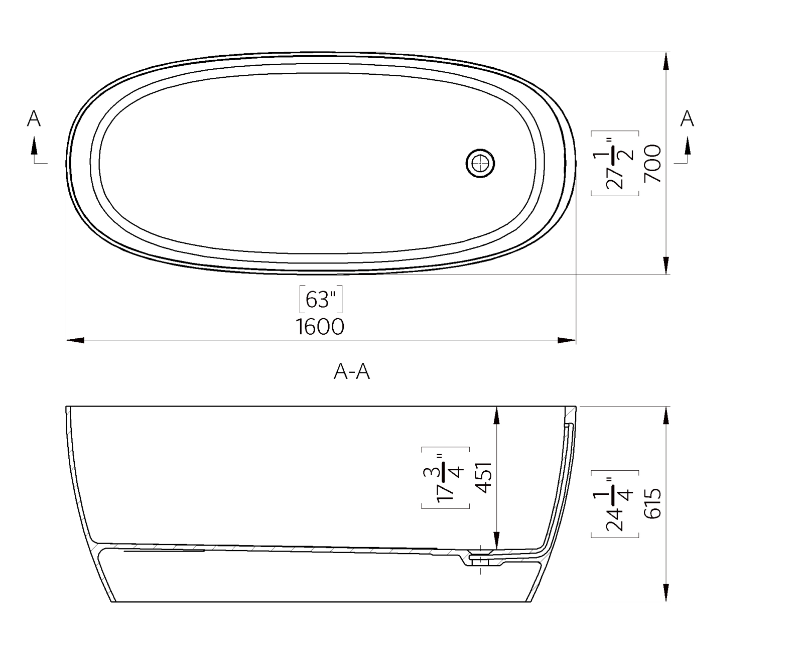 Dimensiunile de 1600 x 700 x 615 mm și volumul generos de 310 litri asigură un spațiu interior surprinzător de spațios pentru dimensiunile sale exterioare, fiind potrivită pentru băi principale sau proiecte rezidențiale de top. Montajul independent (freestanding) evidențiază forma sculpturală și liniile fluide, oferind un look modern, aerisit și plin de eleganță.