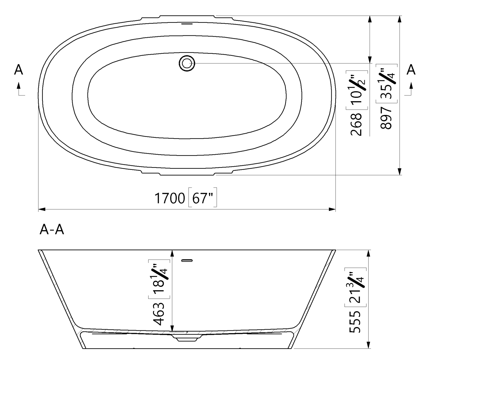 Cadă freestanding ovală realizată din compozit mineral alb lucios, cu dimensiuni de 167 x 89.7 cm. Un model spațios cu un volum de 322 litri, echipat cu preaplin integrat și capac de scurgere din dolomită, perfect pentru amenajări interioare moderne ce pun accent pe lux și relaxare.