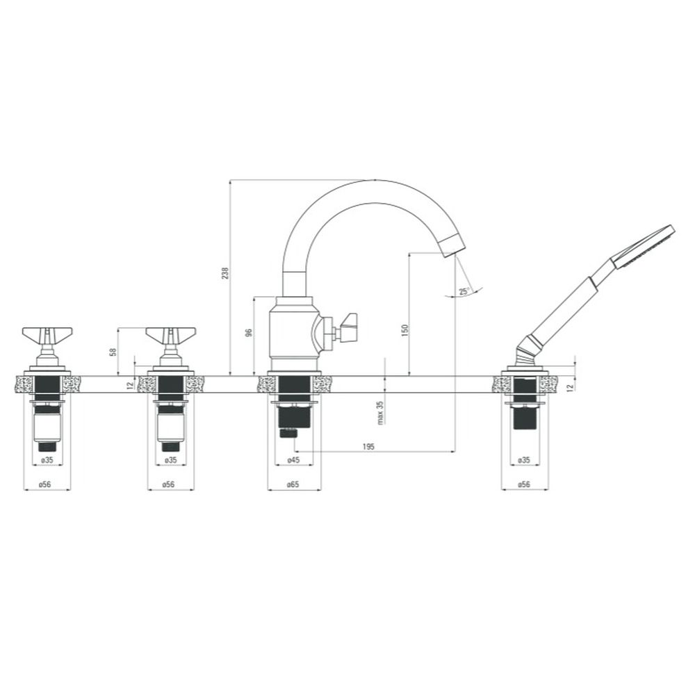 Specificatii tehnice Baterie baie cu montare pe cada, para de dus inclusa, culoare crom, Temisto: