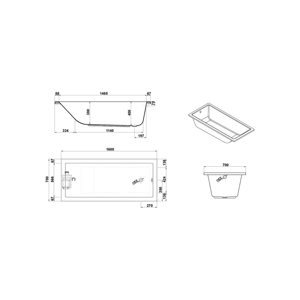Descriere cada baie incastrata Gala Mitta, dreptunghiulara, acril, 160x70 cm, alb lucios