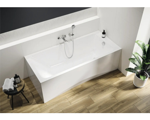 Montaj: cada dreptunghiulară simplă — se poate adapta cu panouri frontale/laterale (vândute separat) și accesorii (sifon, ecran de cadă) pentru finisare completă.