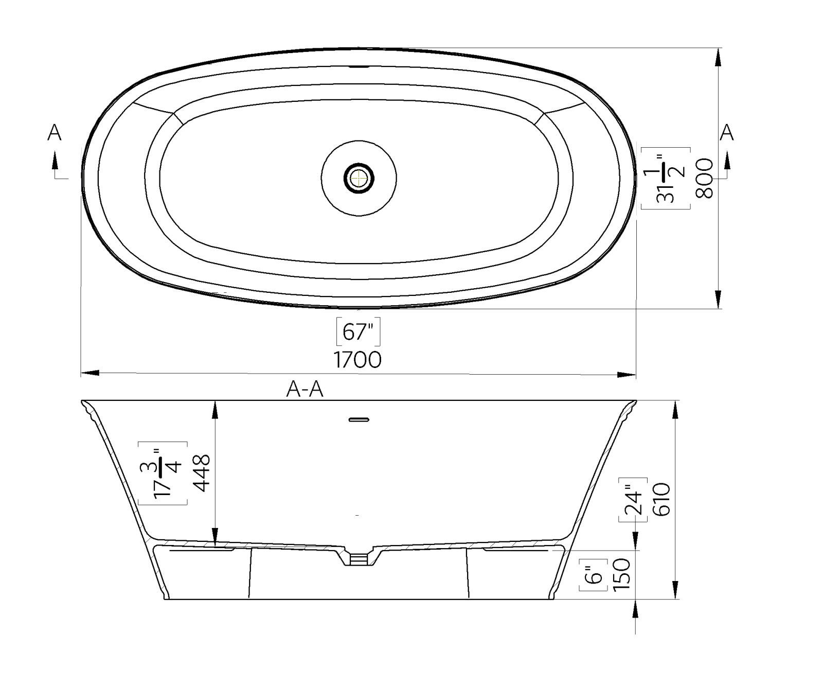 Această cadă freestanding ovală reprezintă echilibrul perfect între estetica organică și funcționalitatea modernă, fiind concepută pentru a deveni punctul focal al unei băi contemporane. Designul său generos, cu o lungime de 1700 mm, este definit de linii curbe line și o bordură profilată discret, oferind un aspect sculptural și o ergonomie superioară pentru momente de relaxare deplină.