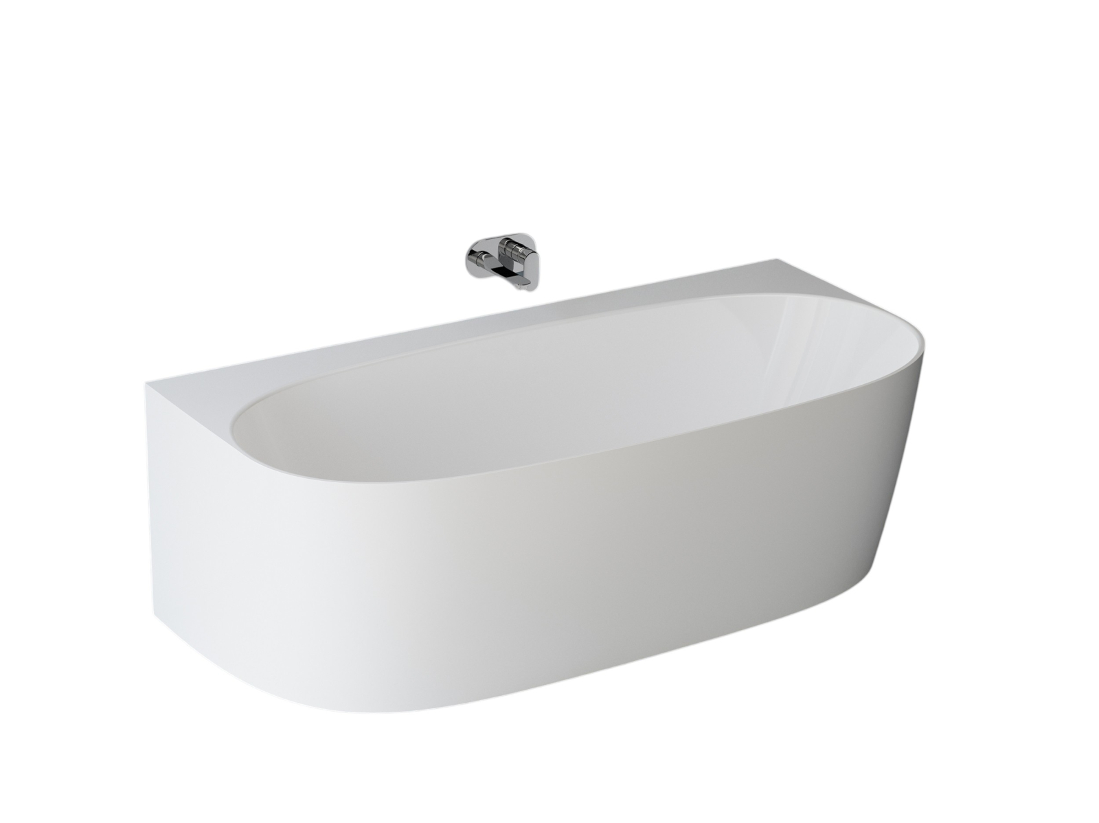 Modelul „back-to-wall” oferă aspectul unei căzi freestanding, dar se lipește de perete, eliminând zonele greu de curățat din spatele căzii și oferind o suprafață de așezare utilă pe latura dinspre perete.