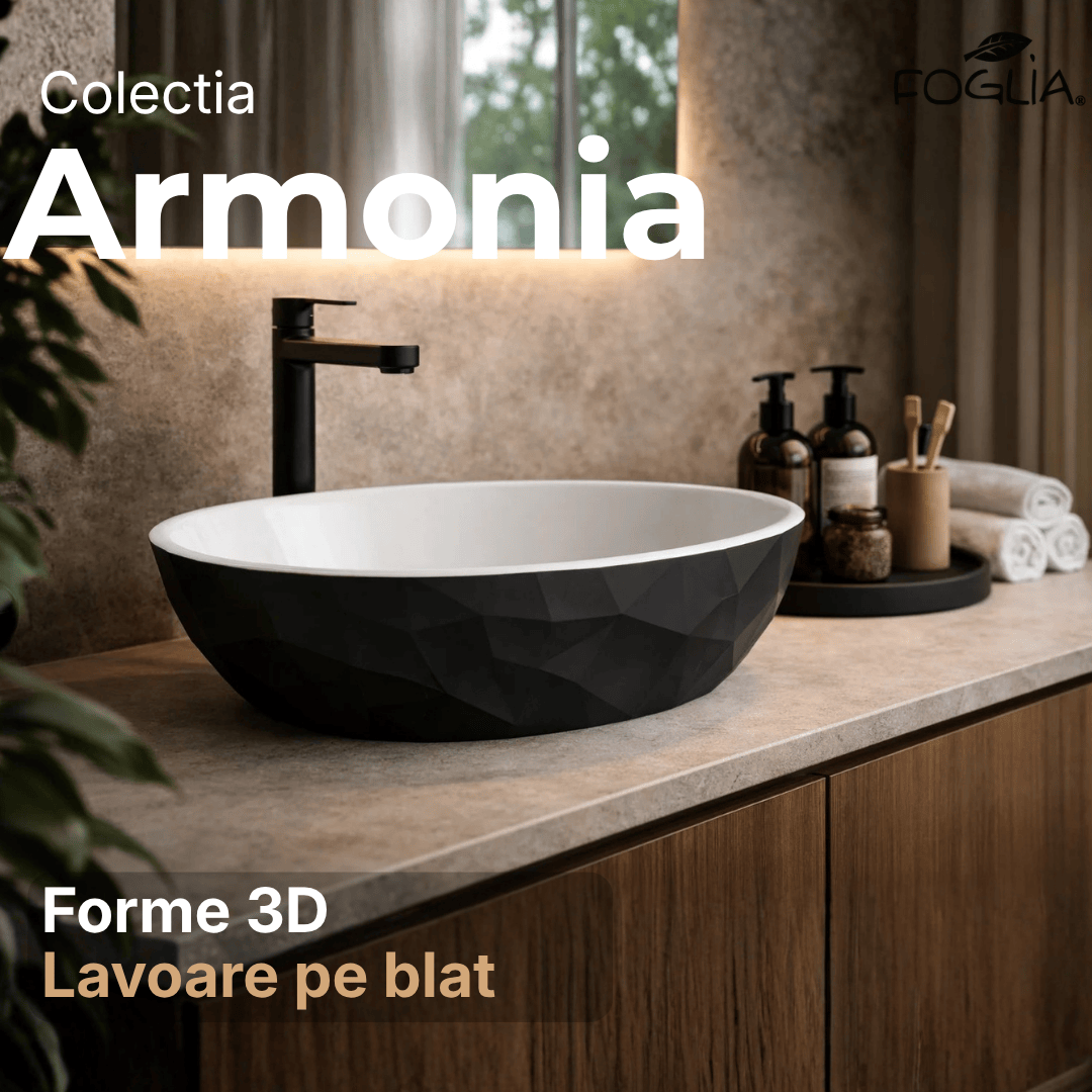 Colecția Armonia pune accent pe forme sculpturale și organice, în timp ce gama Terra are o expresie mai arhitecturală, mai echilibrată și mai controlată vizual.