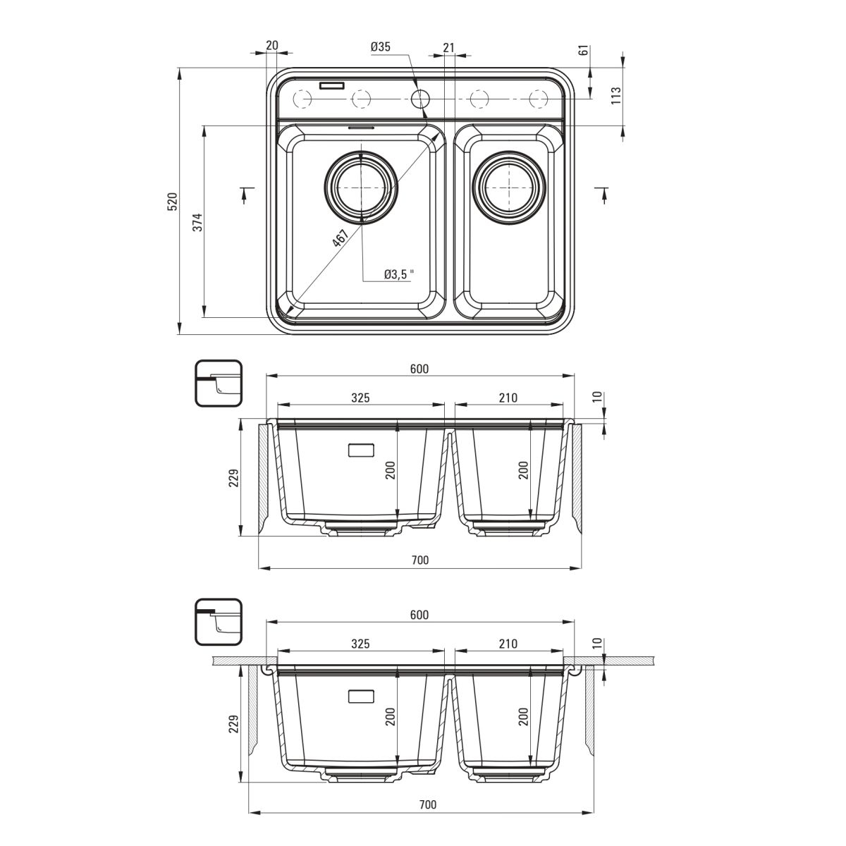 Metodele de instalare flexibile, atât încastrată, cât și sub blat, permit integrarea perfectă în designul bucătăriei, oferind un aspect minimalist și modern. Chiuveta este reversibilă, oferind libertate în amenajarea spațiului. Pentru o instalare optimă, lățimea minimă a dulapului necesară este de 700 mm.