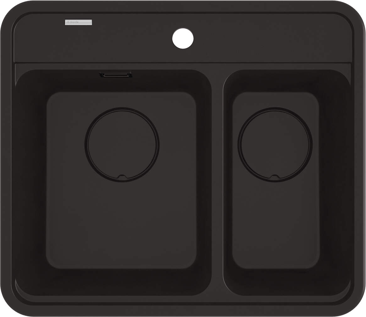 Chiuvetă de bucătărie Deante Momi din granit negru mat, cu două cuve (1.5 cuve). Dimensiuni: 60x52x22.9 cm, adâncime cuve 200 mm. Este reversibilă și se poate instala încastrat sau sub blat. Include sifon pentru economie de spațiu și are garanție de 18 ani.