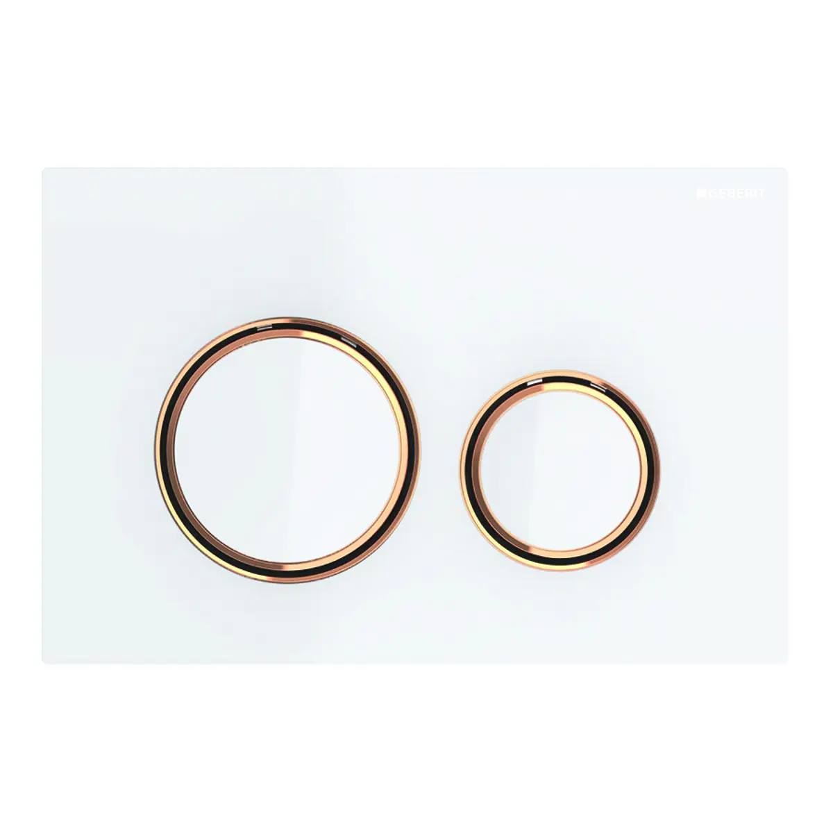 Clapeta actionare dubla rezervor wc, alb/sticla lucioasa cu inel de design aur rosu, Geberit Sigma50