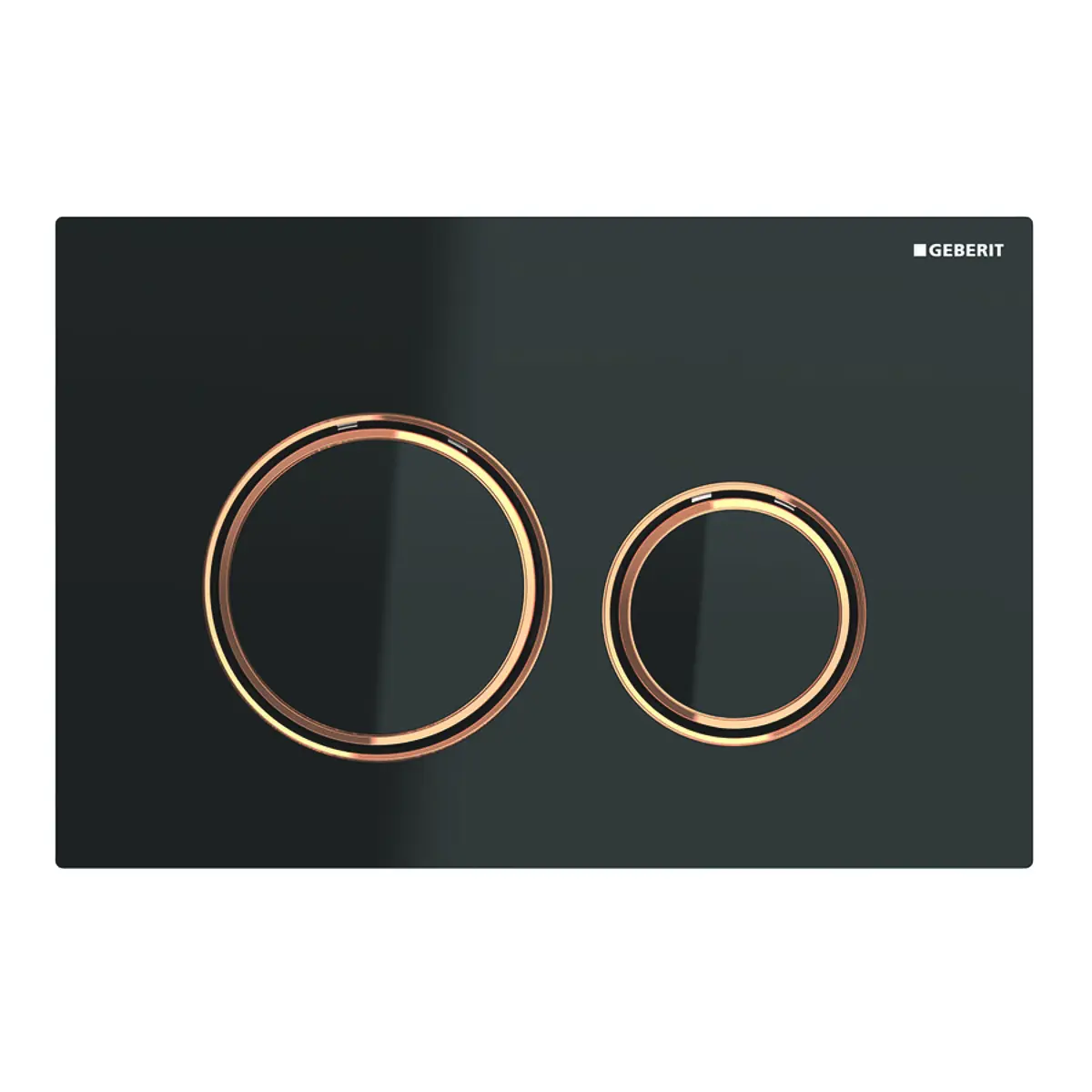 Clapeta actionare dubla rezervor wc, neagra / sticla lucioasa cu inel de design aur rosu, Geberit Sigma50