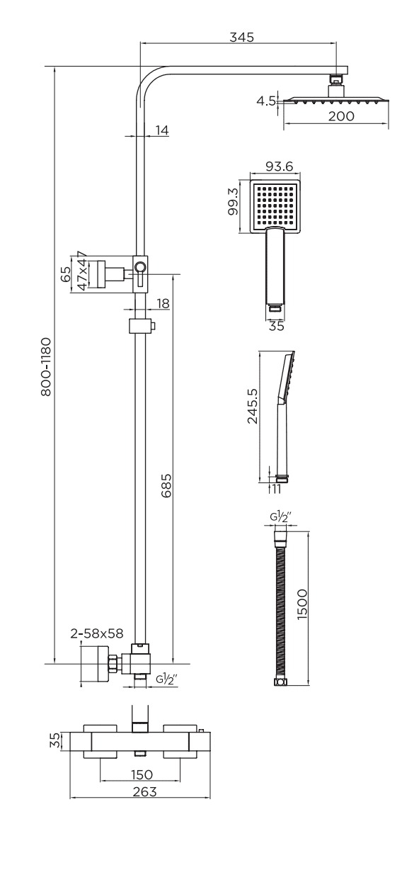 Finisajul negru mat este realizat pentru a rezista la uzură, depuneri și umiditate, păstrându-și aspectul impecabil în timp. Formele geometrice conferă un look urban contemporan, ușor de integrat în cabine de duș cu sticlă transparentă, ceramică în culori închise sau amenajări industrial-moderniste.