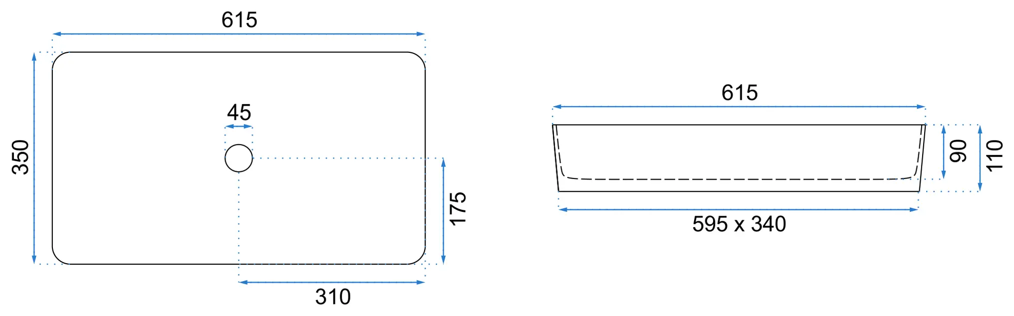 Cu o lungime de 615 mm, o lățime de 350 mm și o înălțime de doar 110 mm, lavoarul se remarcă printr-un design slim, care maximizează spațiul pe blat și oferă o estetică aerisită. Finisajul alb lucios reflectă lumina, contribuind la senzația de spațiu și curățenie.