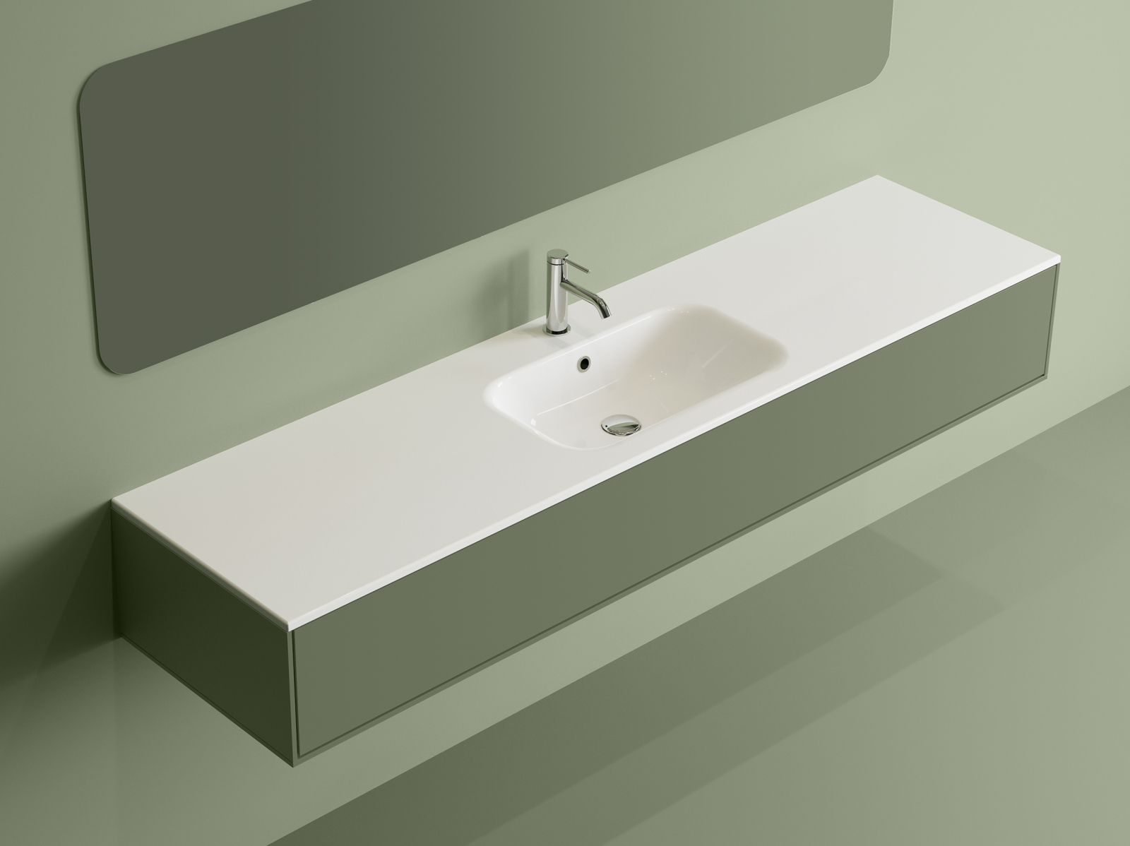Lavoar baie din compozit 181x460 cm, alb lucios, dreptunghiular, montaj suspendat/incastrat Foglia Special