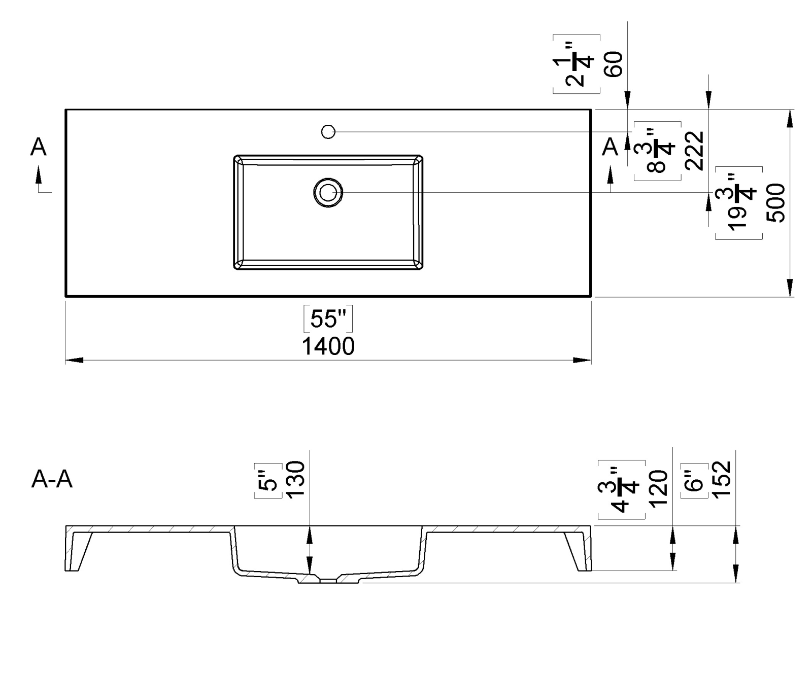 Dimensiunea generoasă de 1400 mm lungime și 500 mm lățime oferă o zonă amplă de utilizare și spațiu suplimentar pe blat pentru depozitarea accesoriilor de baie. Forma dreptunghiulară cu linii clare și moderne se integrează perfect în amenajările contemporane, fiind ideală pentru mobilier suspendat sau pentru proiecte de design interior premium.