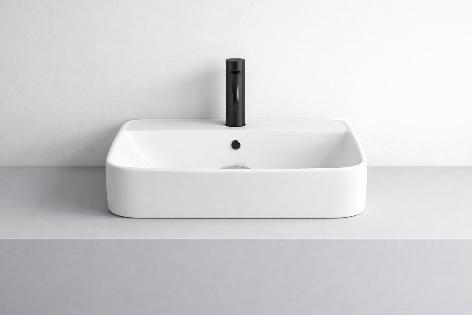 Montajul pe blat sau mobilier oferă flexibilitate în amenajare, adaptându-se perfect în orice tip de baie.