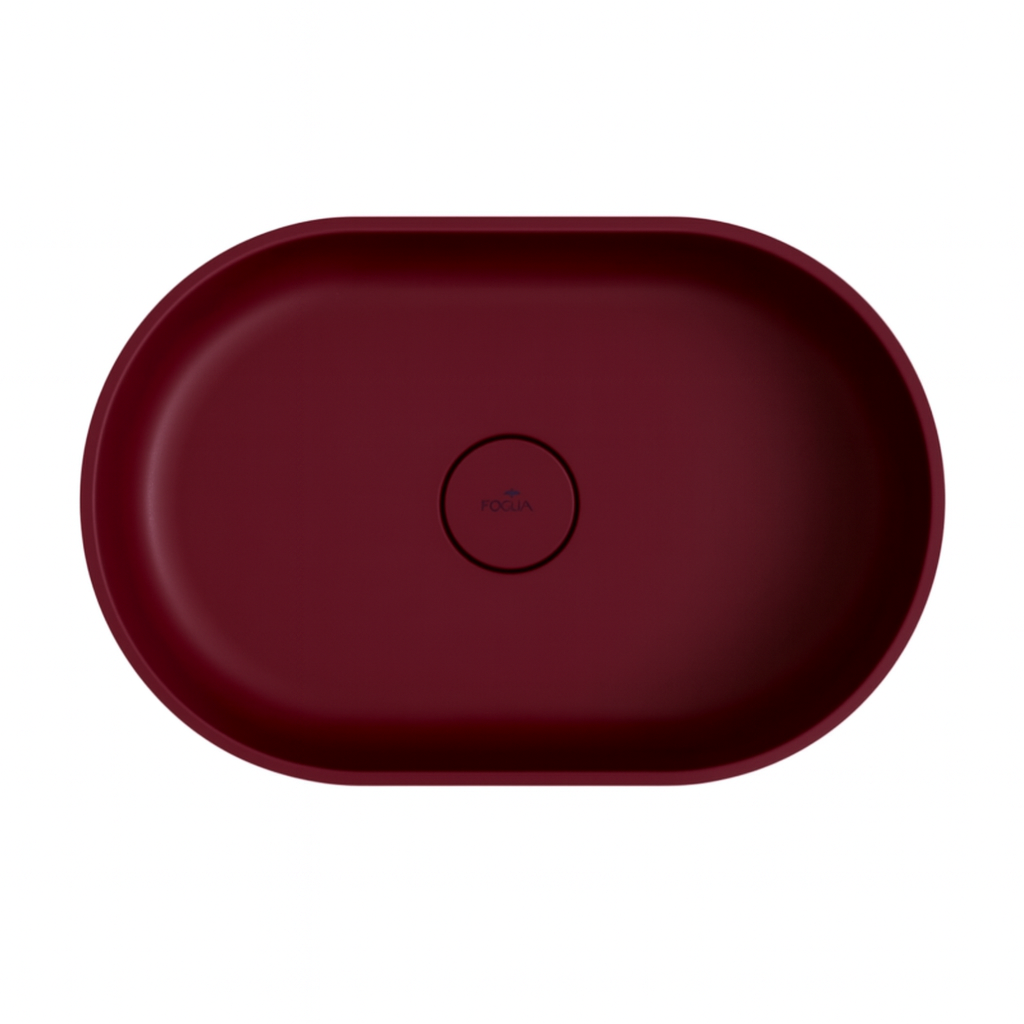 Lavoar pe blat din compozit cu montare pe blat, 60x38 cm, burgundy mat, Foglia Terra stil modern și rezistență pentru băi elegante