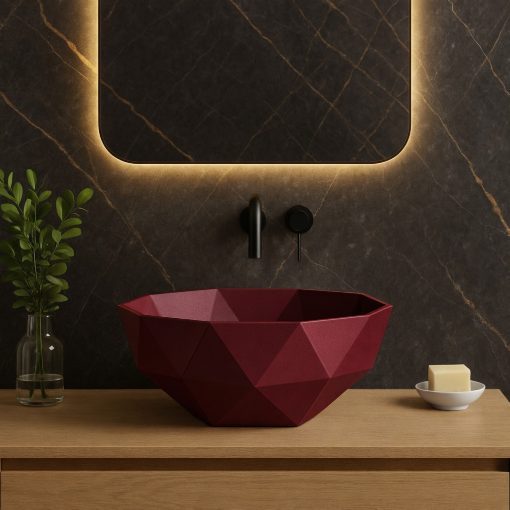 1 x LAVOAR DE BAIE COMPOZIT CU MONTARE PE BLAT, BURGUNDY MAT, FOGLIA 3D BOWL