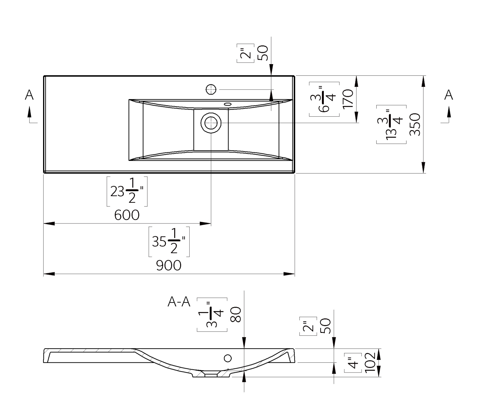Dimensiunile de 900 x 350 mm și înălțimea de 102 mm permit integrarea ușoară în mobilier de baie modern, oferind un echilibru optim între design, funcționalitate și eficiența spațiului.