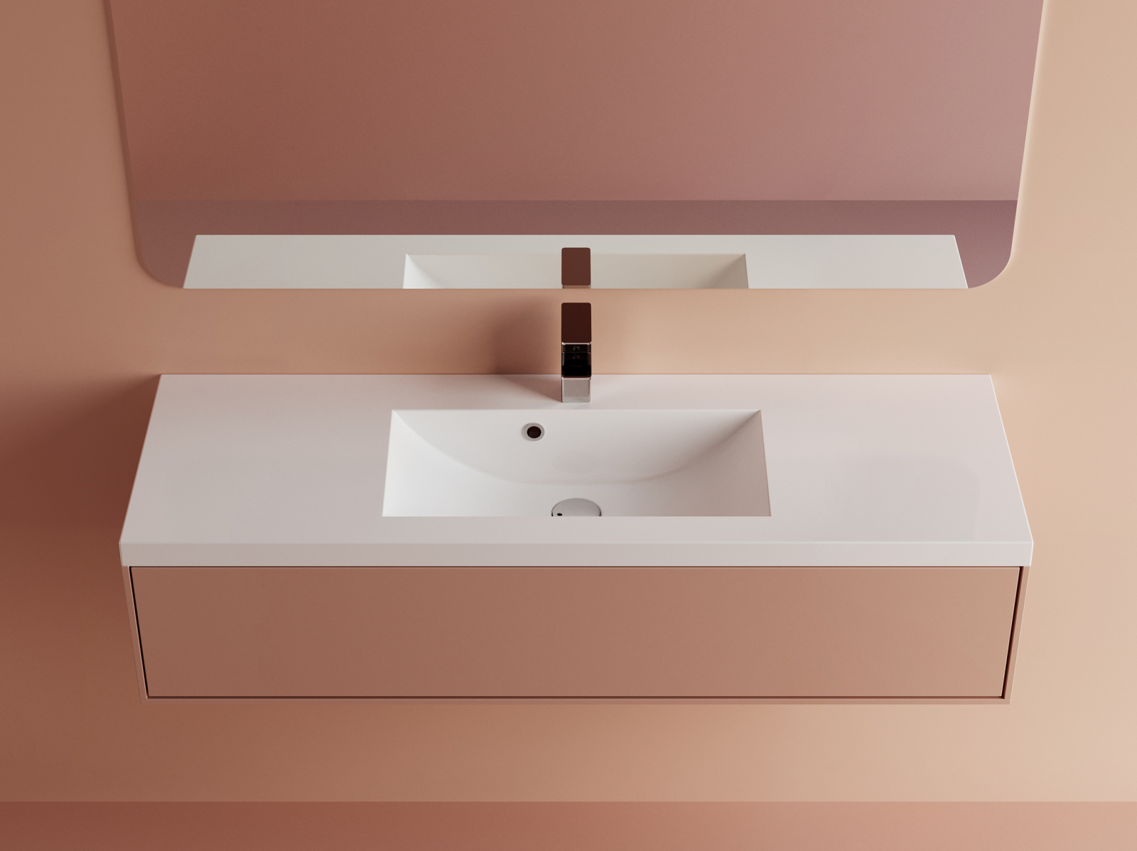 Lavoarul încastrat Foglia realizat din compozit este conceput pentru amenajări de baie moderne în care designul minimalist și funcționalitatea sunt esențiale. Forma dreptunghiulară și liniile curate creează un aspect contemporan și elegant, potrivit pentru mobilier de baie modern sau pentru blaturi realizate din piatră, compozit sau lemn tratat.