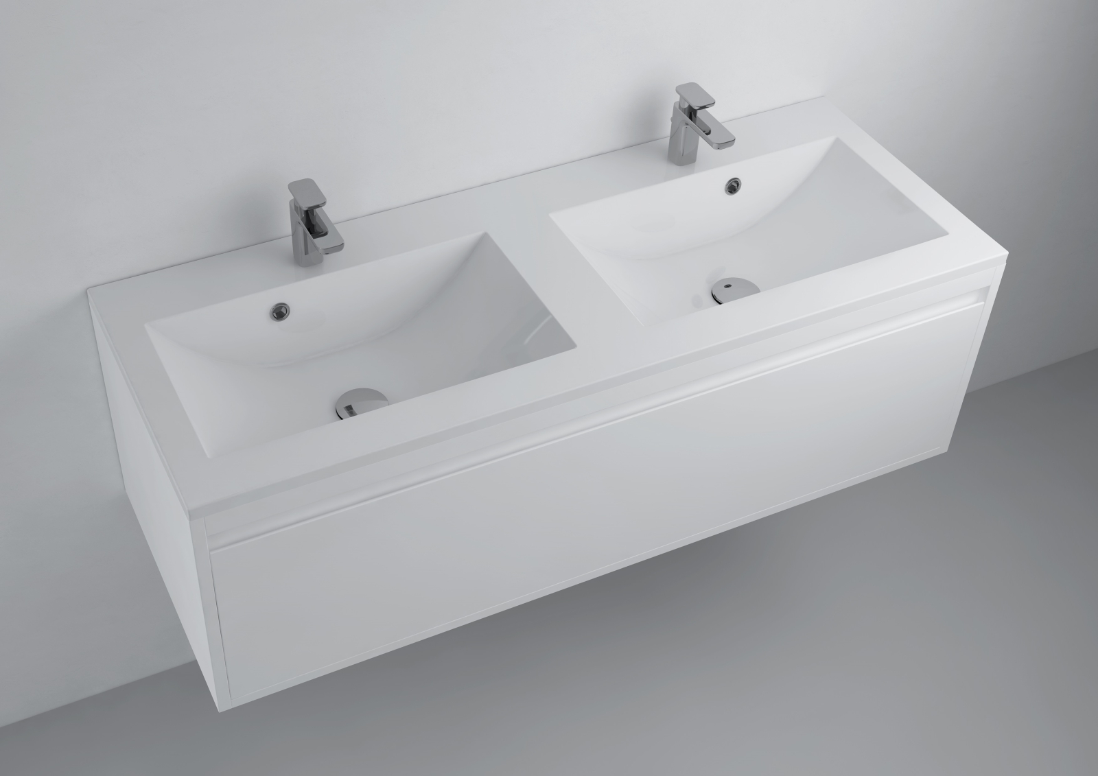 Lavoarul incastrat dublu Foglia realizat din compozit este conceput pentru amenajari de baie moderne in care designul si functionalitatea sunt perfect echilibrate. Forma dreptunghiulara si liniile curate ofera un aspect elegant si contemporan, potrivit pentru mobilier de baie modern sau pentru blaturi realizate din piatra, compozit sau lemn tratat.