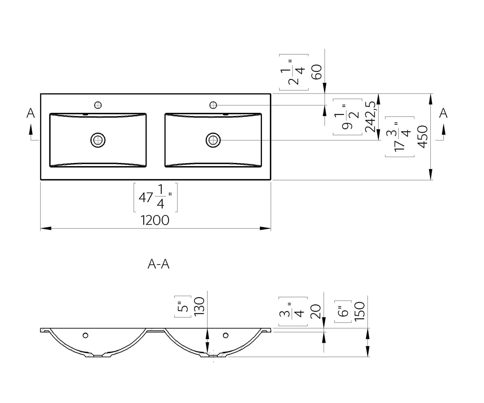 Dimensiunile de 1200 x 450 mm ofera un spatiu generos pentru utilizare si permit integrarea lavoarului in mobilier de baie de dimensiuni mari sau in bai spatioase. Designul dreptunghiular permite integrarea usoara in numeroase stiluri de amenajare, de la bai minimaliste si moderne pana la interioare contemporane sau elegante.