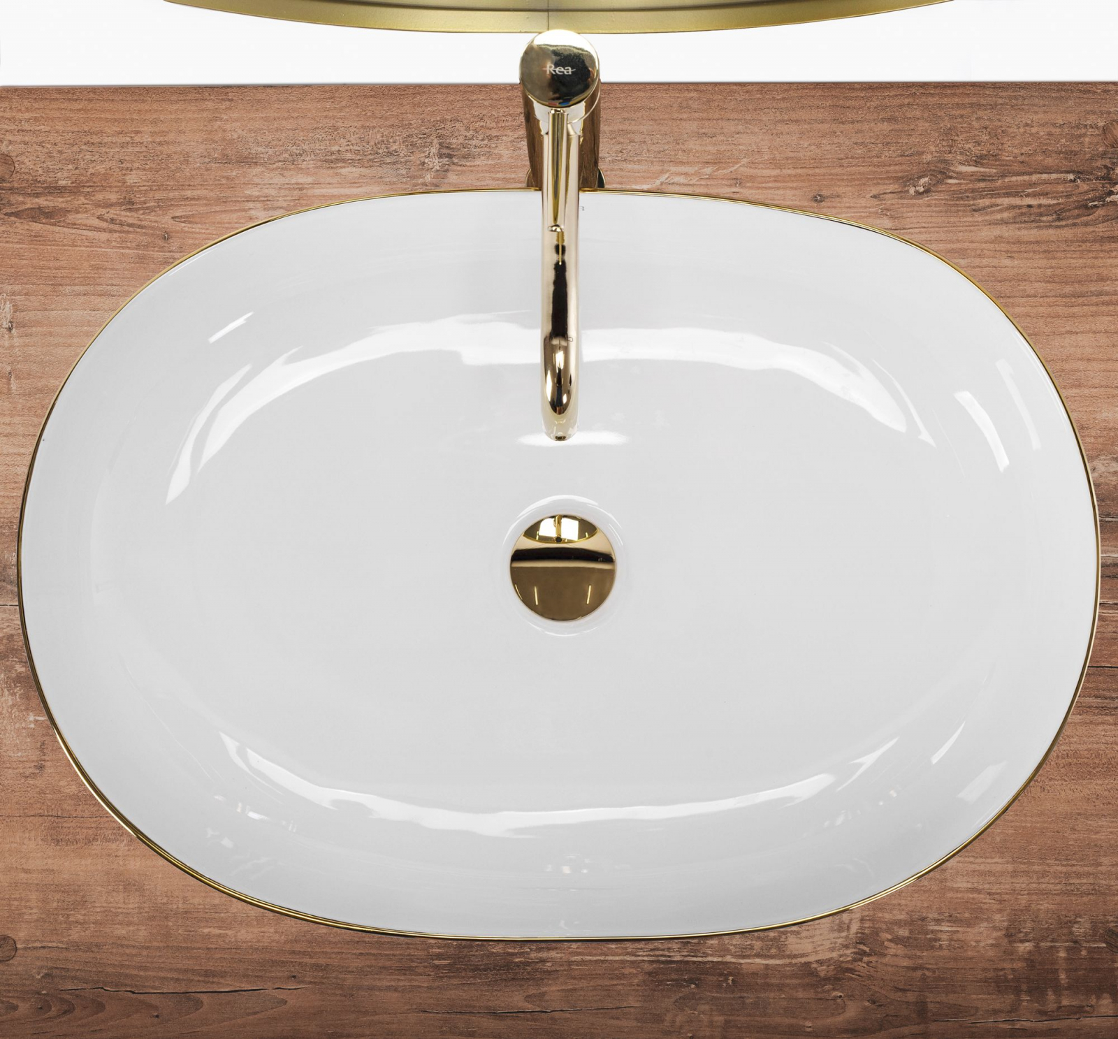 Rea Lavoar oval Rea CLEO , alb/auriu, ceramică lucioasă, 60,5 x 41 cm