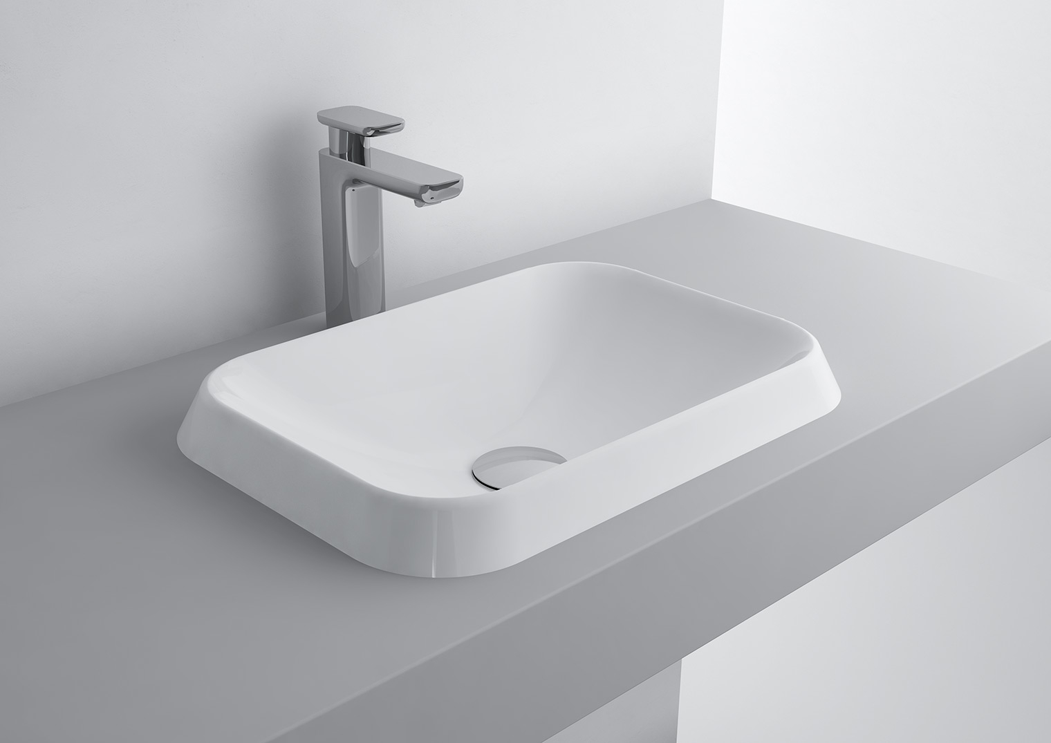 Designul lavoarului fără orificiu propriu necesită instalarea unei baterii înalte direct pe blat sau a unei baterii de perete (încastrate), oferind astfel libertate totală în amenajarea spațiului.