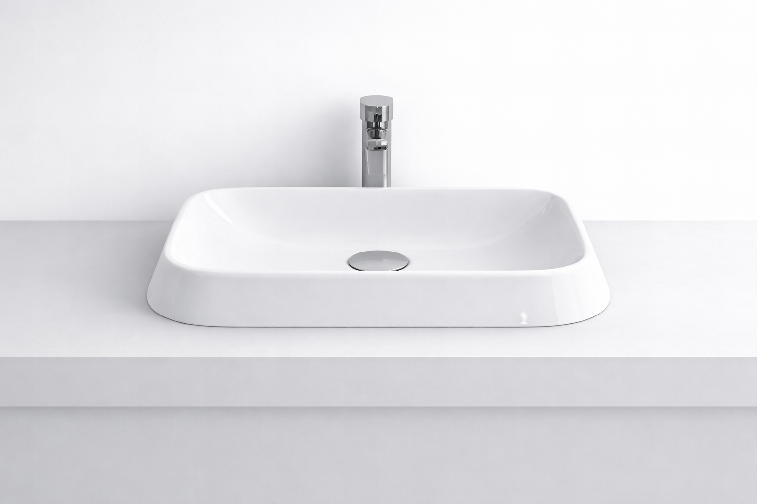 Lavoar pe blat din compozit mineral, lungime 45 cm, cu formă dreptunghiulară și finisaj alb lucios. O piesă de design minimalist de 5 kg, fără preaplin, ideală pentru montajul pe blat în băi care adoptă un stil modern, oferind o durabilitate excelentă și o întreținere ușoară.